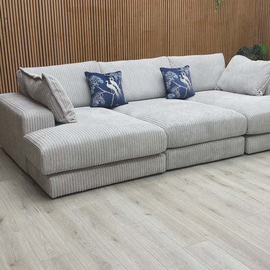 - Upholstered in super-soft jumbo cord, with oversized ribbed channels that offer great comfort and practicality
