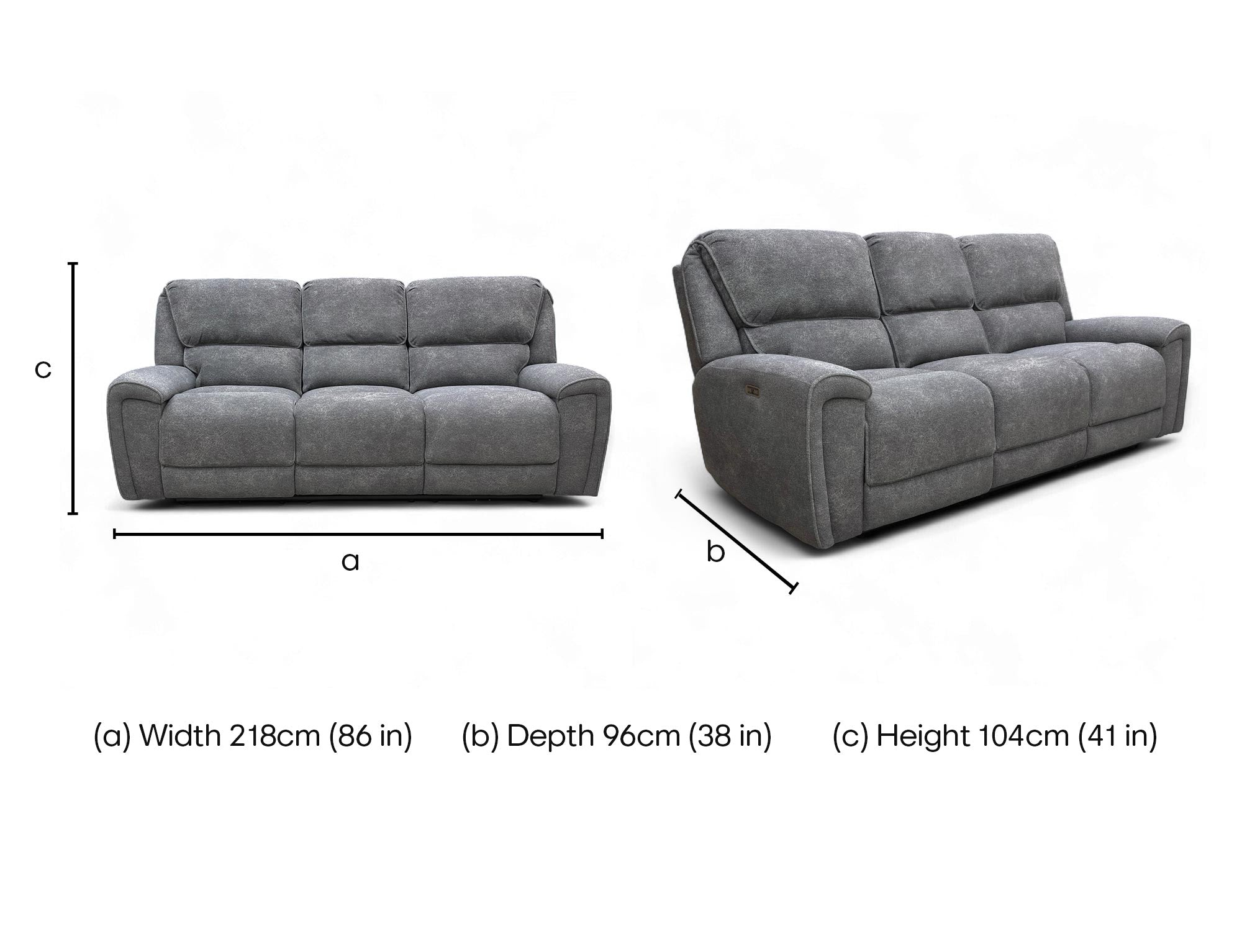 ‘Ricky’ Charcoal Grey Teddy Velvet 3 Seater Power Recliner Sofa with Drop Down Cup Holders
