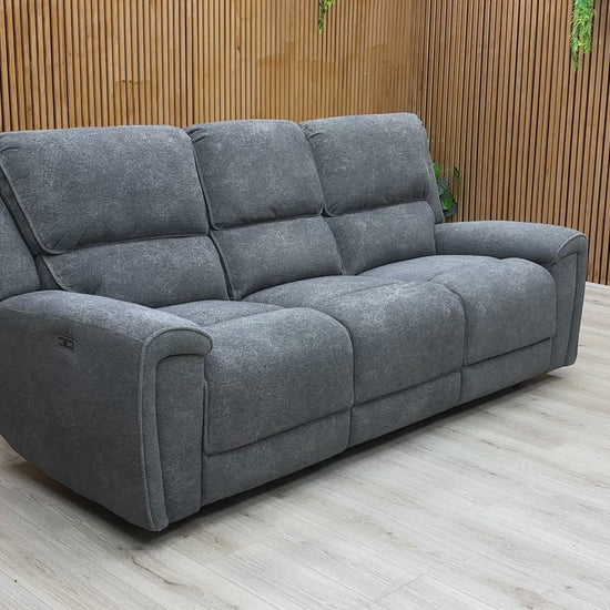 Experience ultimate comfort with the 'Ricky' 3 Seater Power Recliner Sofa, upholstered in sumptuous charcoal grey teddy velvet. This sophisticated piece combines luxury with practicality, featuring motorised reclining mechanisms that allow each seat to adjust independently for personalised relaxation. Integrated drop-down cup holders keep beverages within easy reach, whilst the plush velvet fabric offers exceptional softness and durability. Perfect for modern living spaces, the 'Ricky' delivers cinema-quality comfort without compromising on style or functionality.