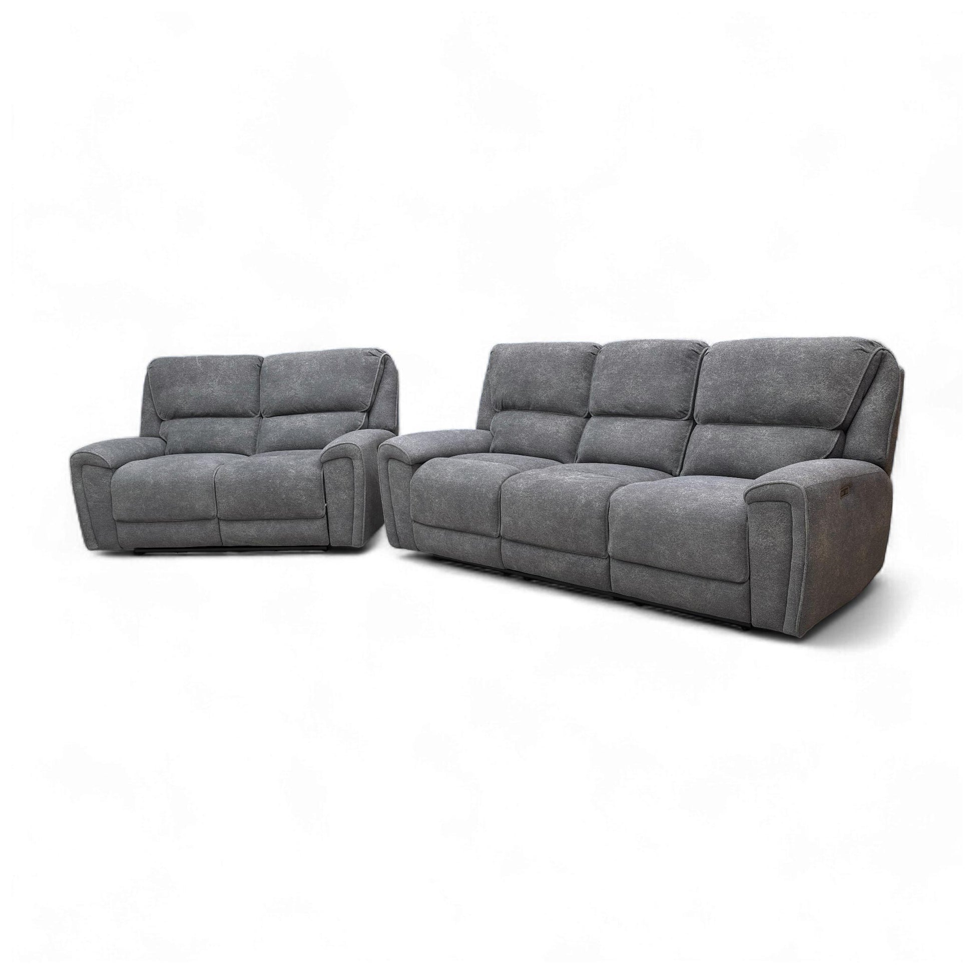Experience ultimate comfort with the 'Ricky' collection, featuring a luxurious charcoal grey teddy velvet finish that combines softness with sophisticated style. The 3-seater power recliner offers integrated drop-down cup holders for convenient refreshment access, whilst the accompanying 2-seater power recliner provides flexible seating arrangements. Both pieces feature motorised reclining mechanisms for effortless adjustment, allowing you to find your ideal lounging position with precision. The plush velvet upholstery delivers exceptional durability and a tactile aesthetic, making this suite an elegant addition to any living space. Perfect for families seeking both functionality and refined comfort.