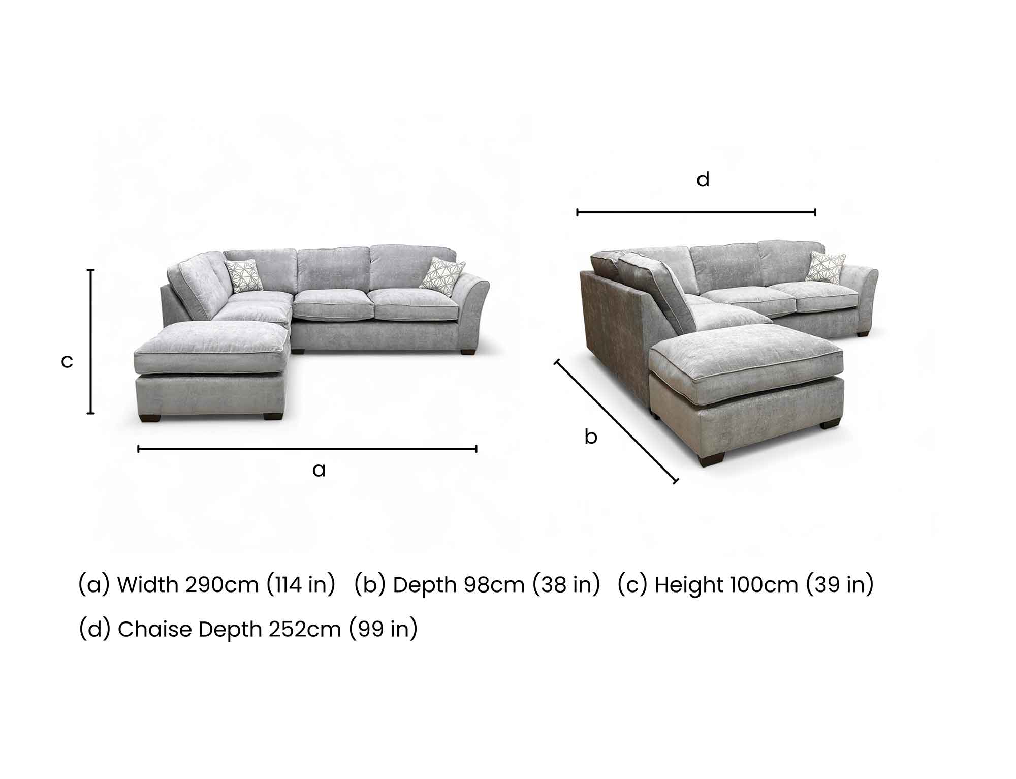 ‘Rosie’ Meridian Shark Grey Chenille Fabric Left Hand Facing Open End Chaise Corner Sofa