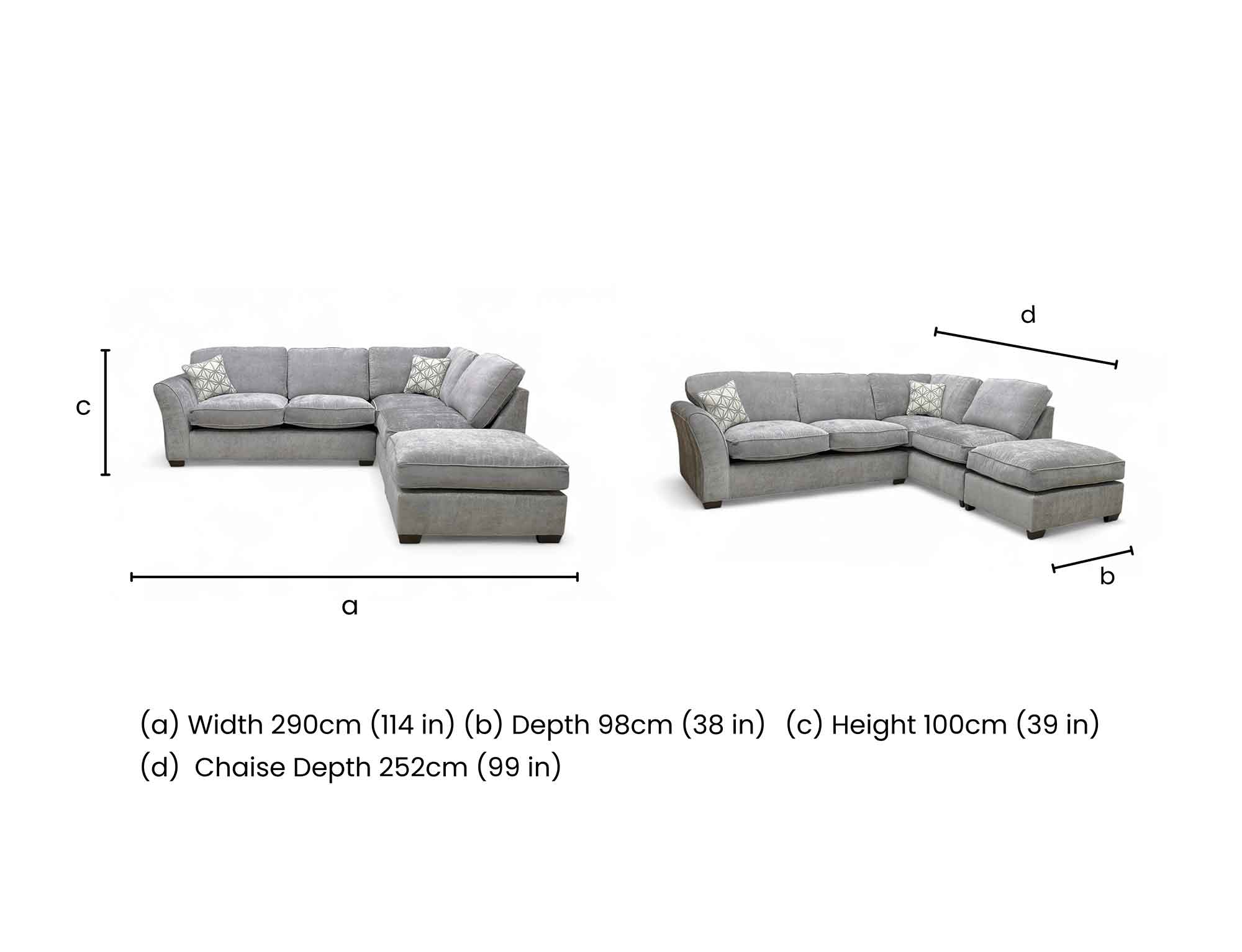 ‘Rosie’ Meridian Shark Grey Chenille Fabric Right Hand Facing Open End Chaise Corner Sofa