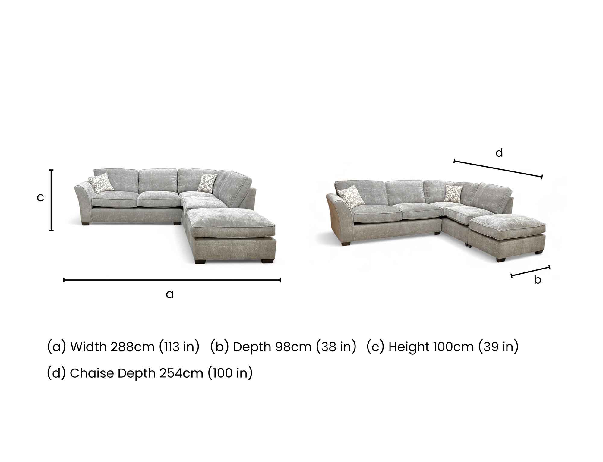 - The 'Rosie' Corner Chaise Sofa in Meridian Truffle Grey Chenille Fabric is a stylish and contemporary piece of furniture for any living room.