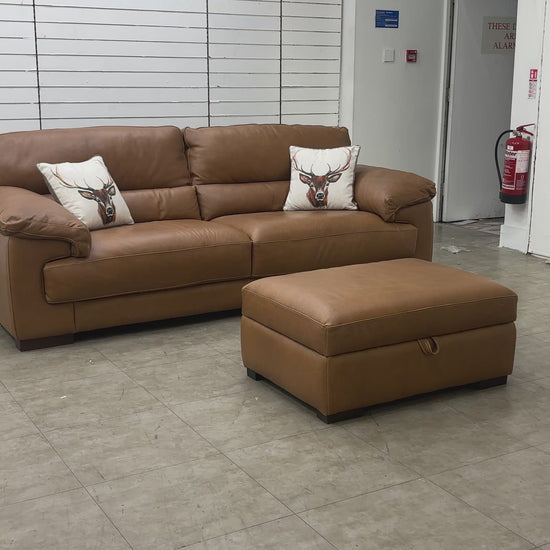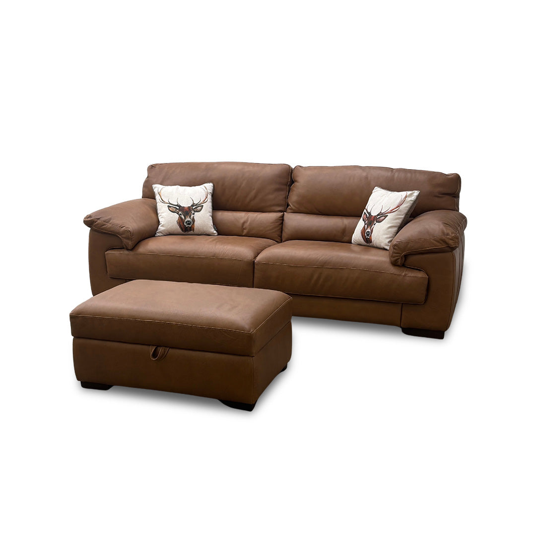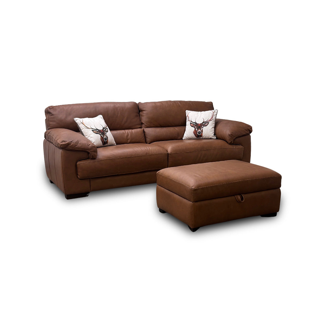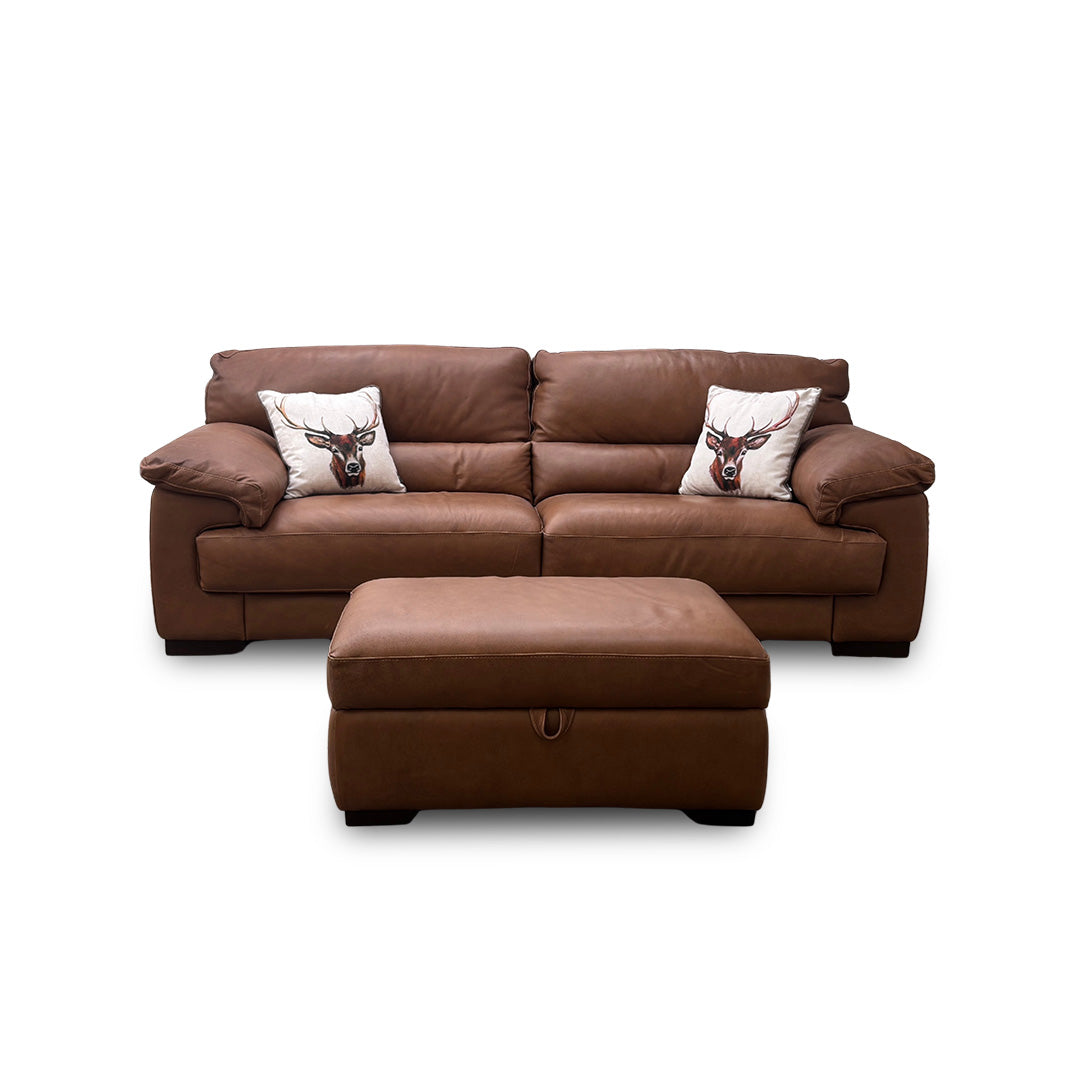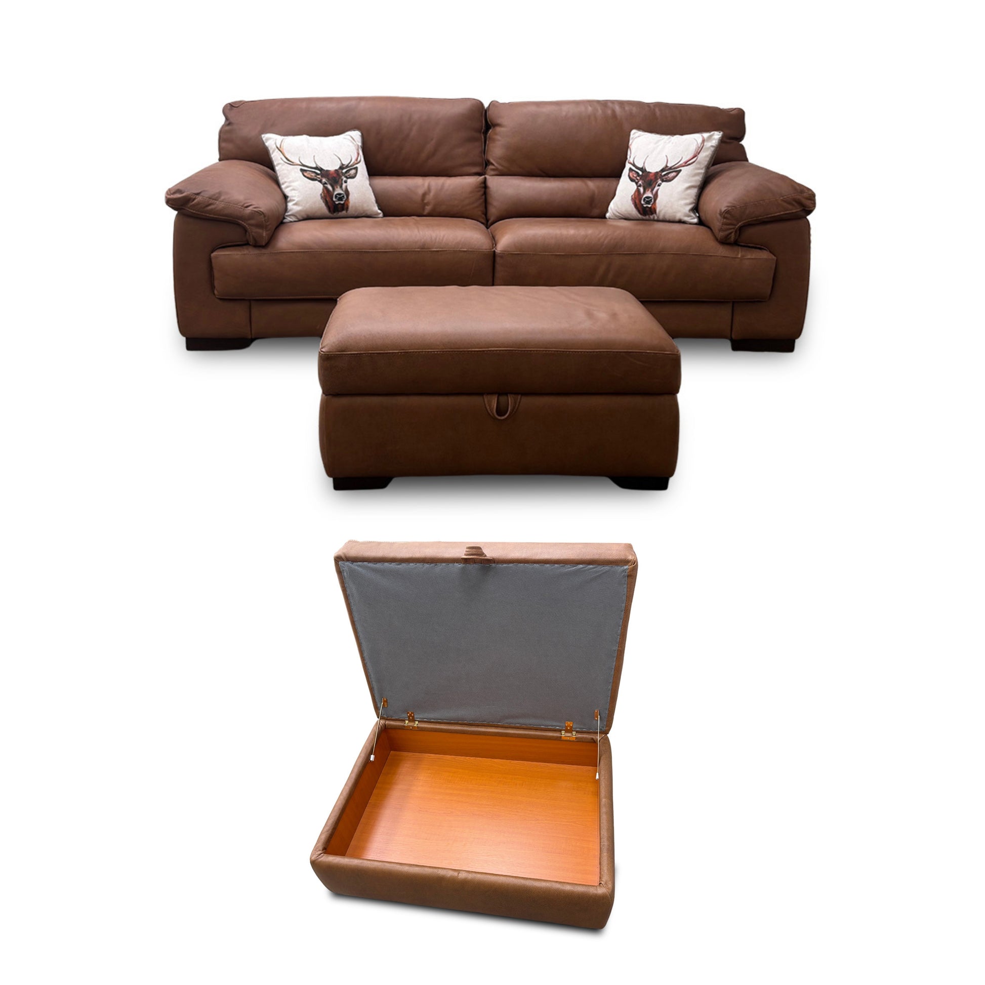 'Santino' Truffle Apollo Ranch 60500 Leather 4 Seater Sofa with Storage Footstool