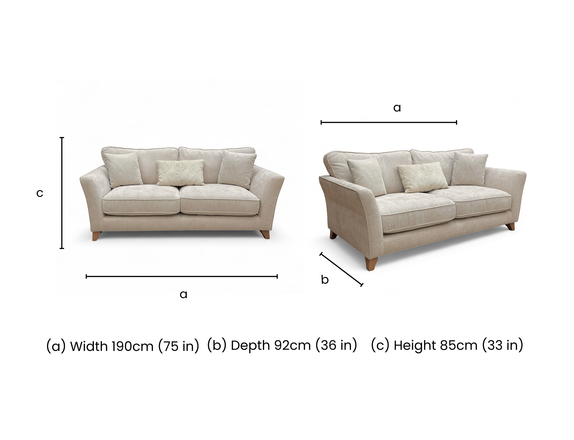 ‘Sarah’ Cream Fabric Formal Back 3 Seater Sofa