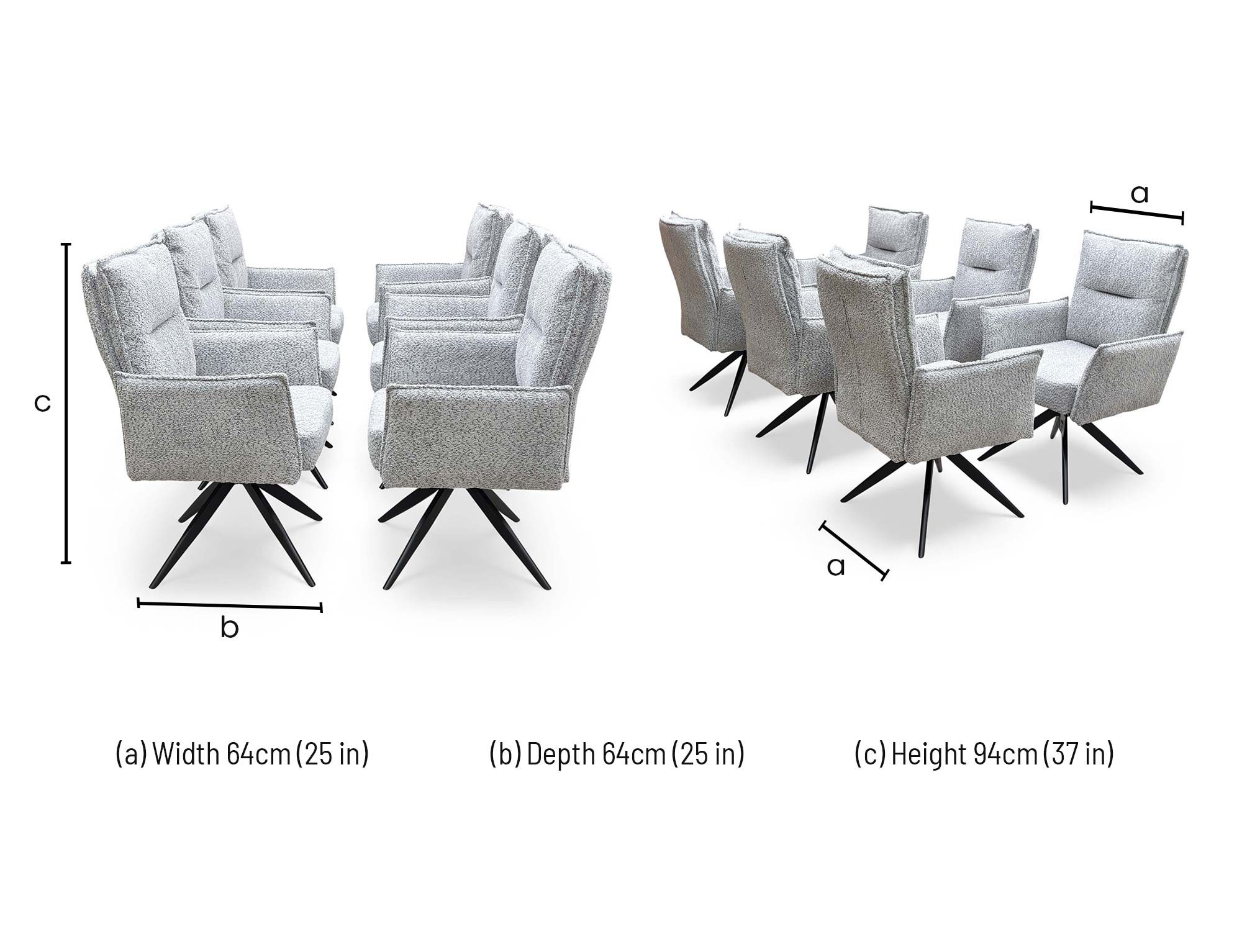 • With a textured chenille upholstery fabric in a sleek grey colour, these chairs are both practical and visually appealing.