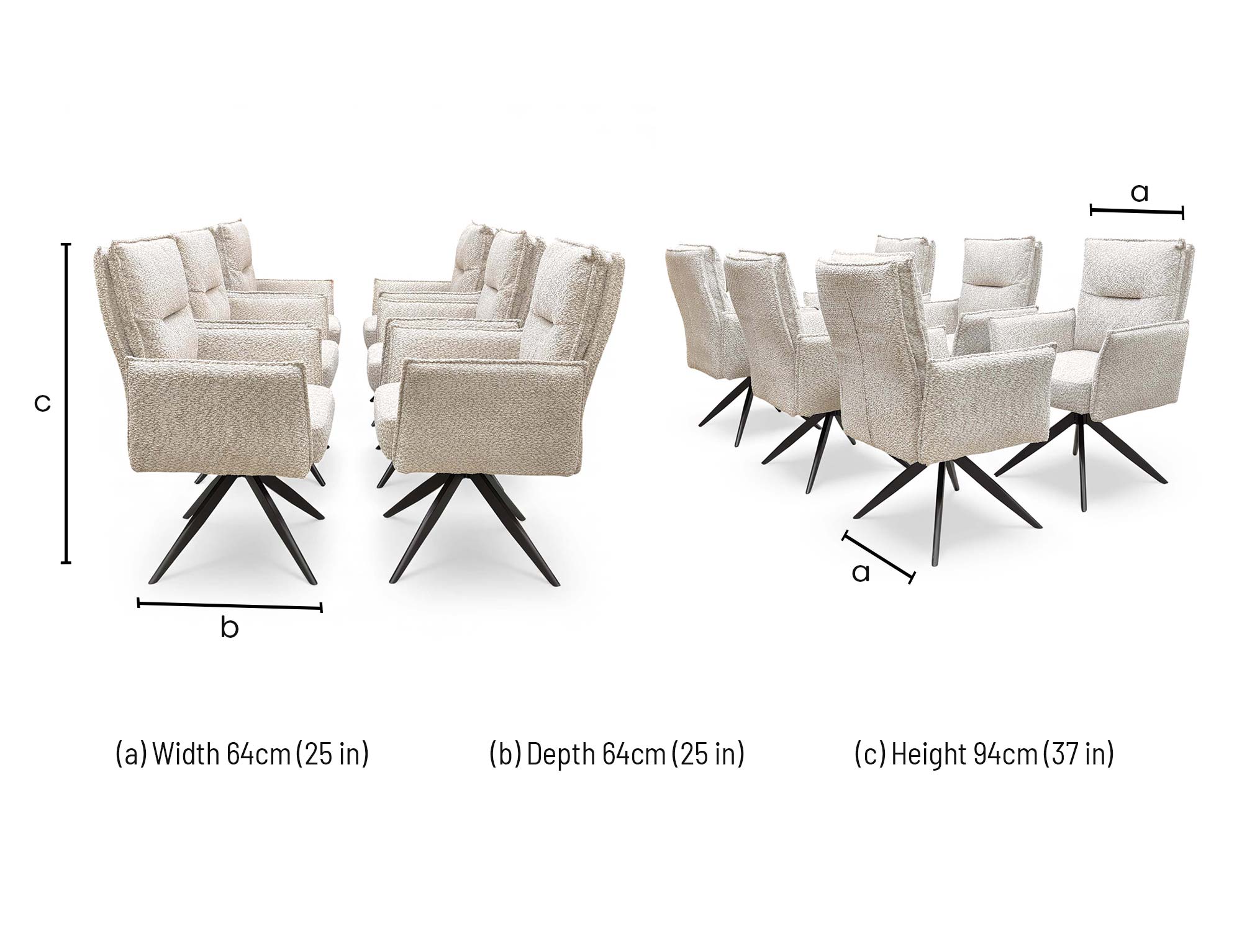 ‘Sarah’ Natural Mink Textured Chenille Effect Swivel Dining Chair - Set of 6
