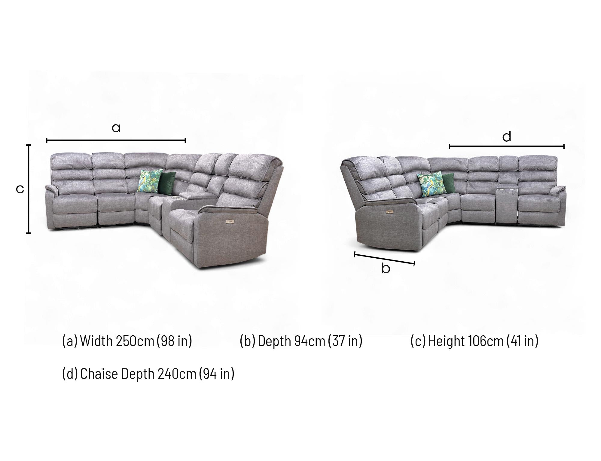 ‘Savoy’ Charcoal Velvet Double Power Recliner 2 Corner 2 Sofa with Cup Holders and Storage Console