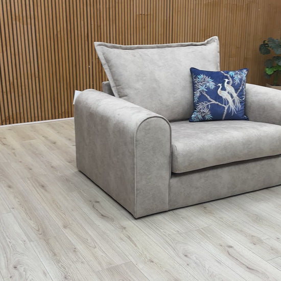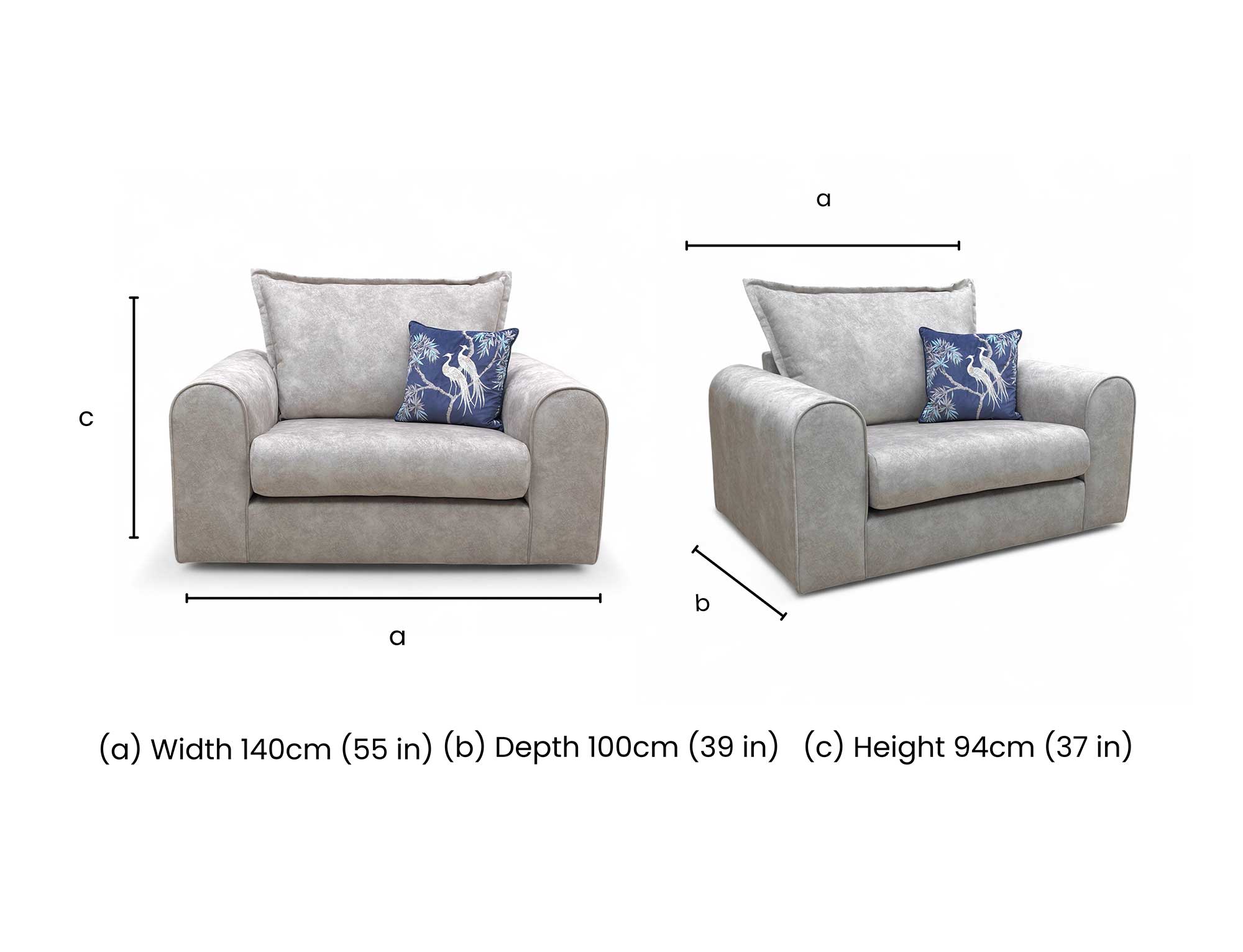 - The DFS ‘Serenis’ Cuddler Chair Silver Rest Velvet Loveseat is a stylish and comfortable piece of furniture perfect for a bedroom, living room, or home office.