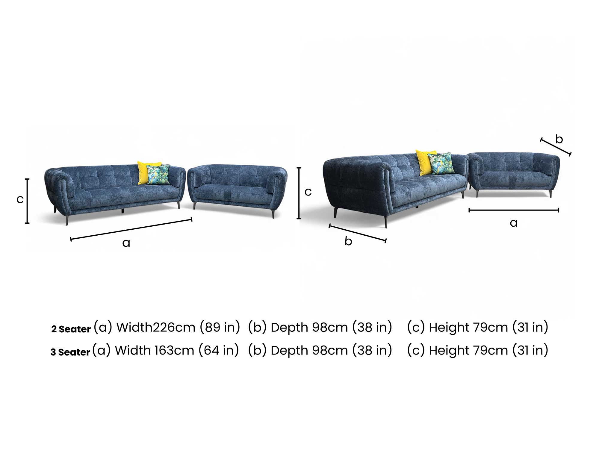 ‘Sienna’ Hudson Ocean Blue 25315 Fabric 3 + 2 Seater Sofa Set