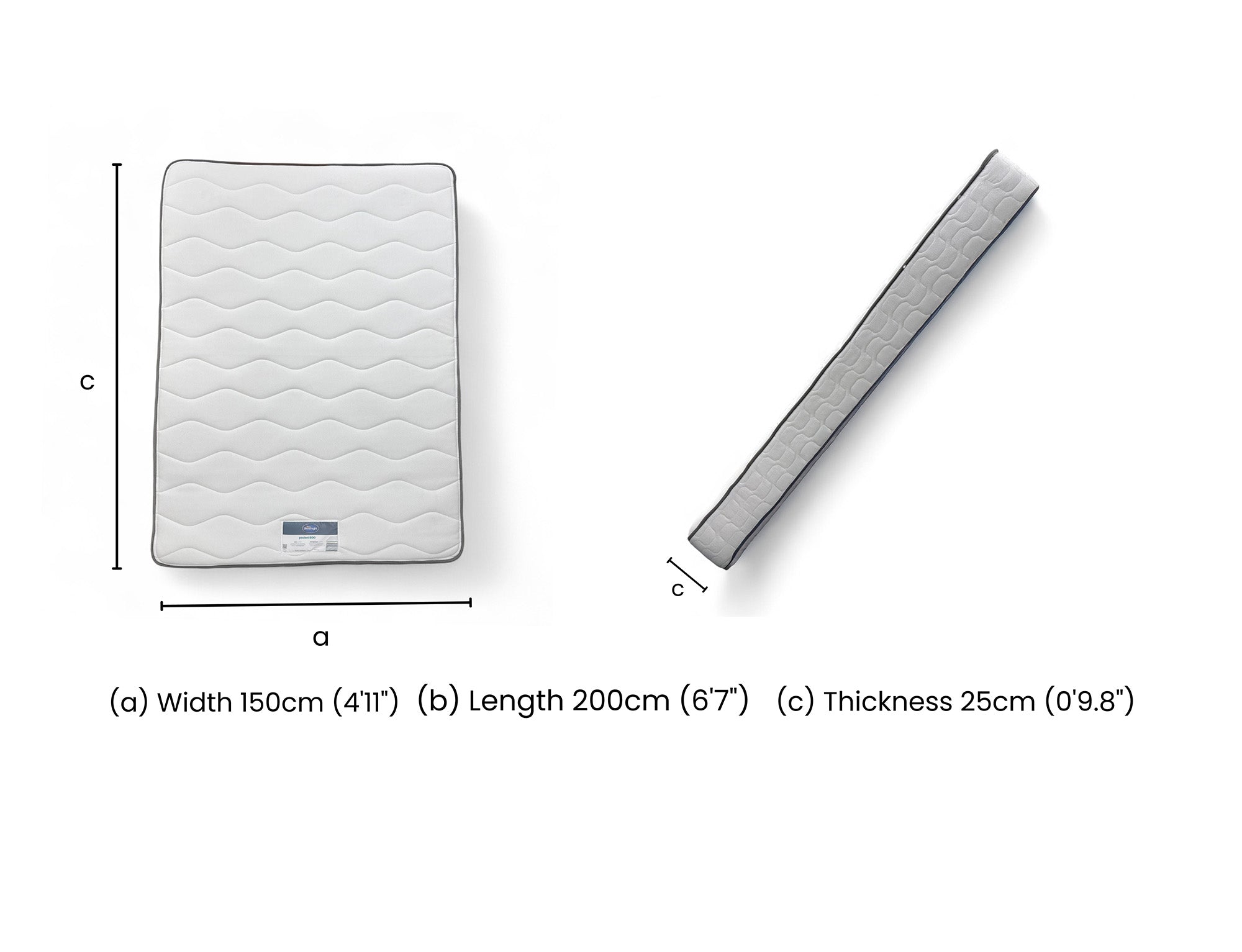 - Mattress size W150, L200, D25cm.