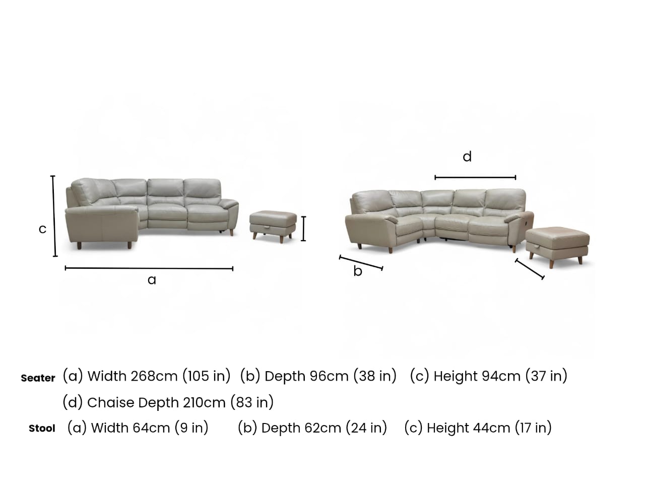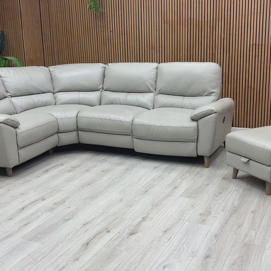 ‘Silverstone’ Cat-60:23 Lead Grey Leather Compact Left Hand Facing Power Recliner Corner Sofa + Small Storage Footstool