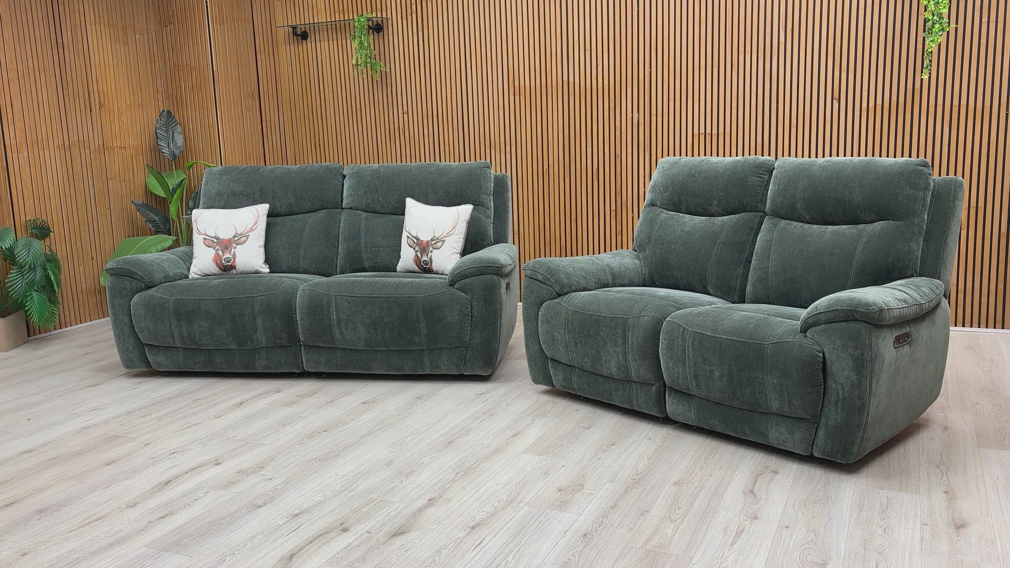 ‘Sloane’ 58001 Manhattan Pine Green 3 + 2 Power Recliner Sofa Set