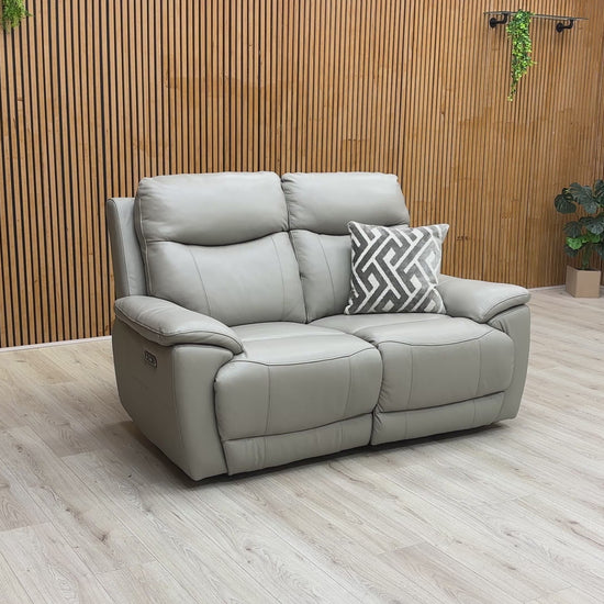 ‘Sloane’ Cat-60:28 New Grey Leather 2 Seater Power Recliner Sofa