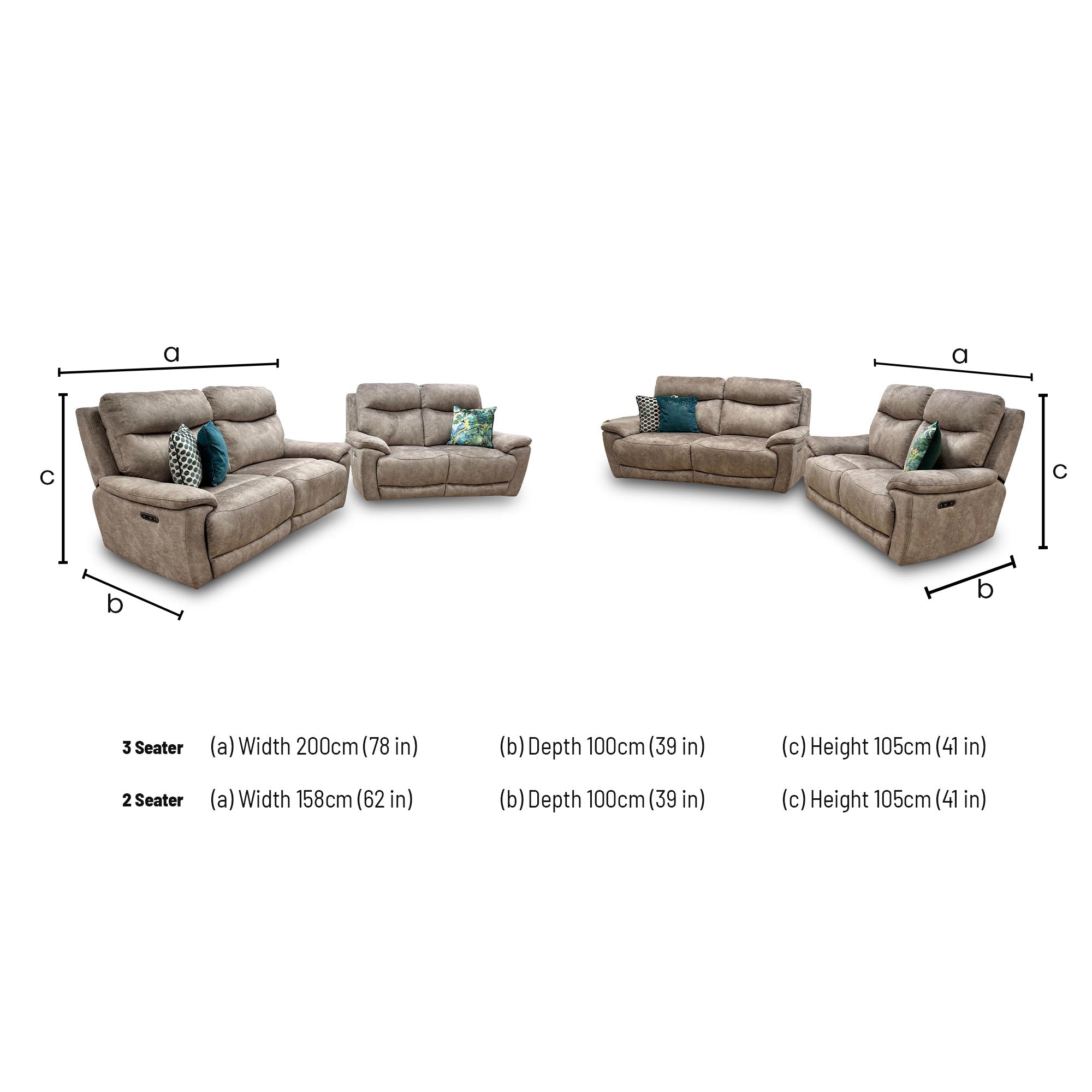 ‘Sloane’ Marble Charcoal Grey Velvet 3 + 2 Seater Power Recliner Sofa Set