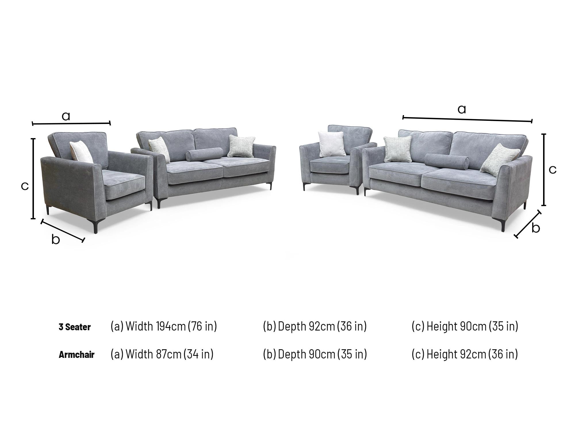 ‘Smith’ Steel Towel Velvet 3 Seater Sofa + Armchair
