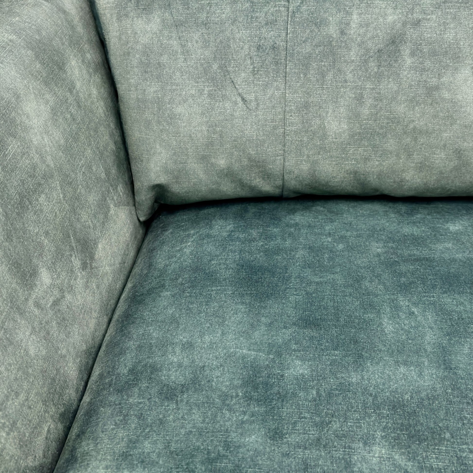 - Distressed velvet upholstery gives this sofa an edgy, lived-in look.
