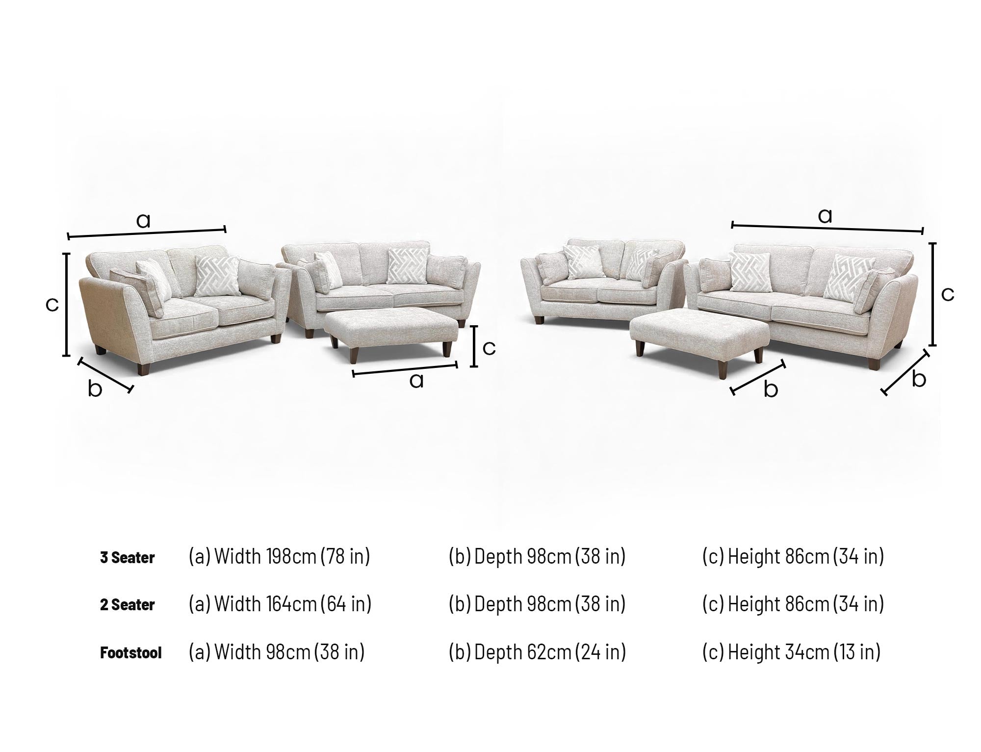 'Tabitha' Ivory Woven Fabric 3 + 2 Seater Sofa with Bench Stool
