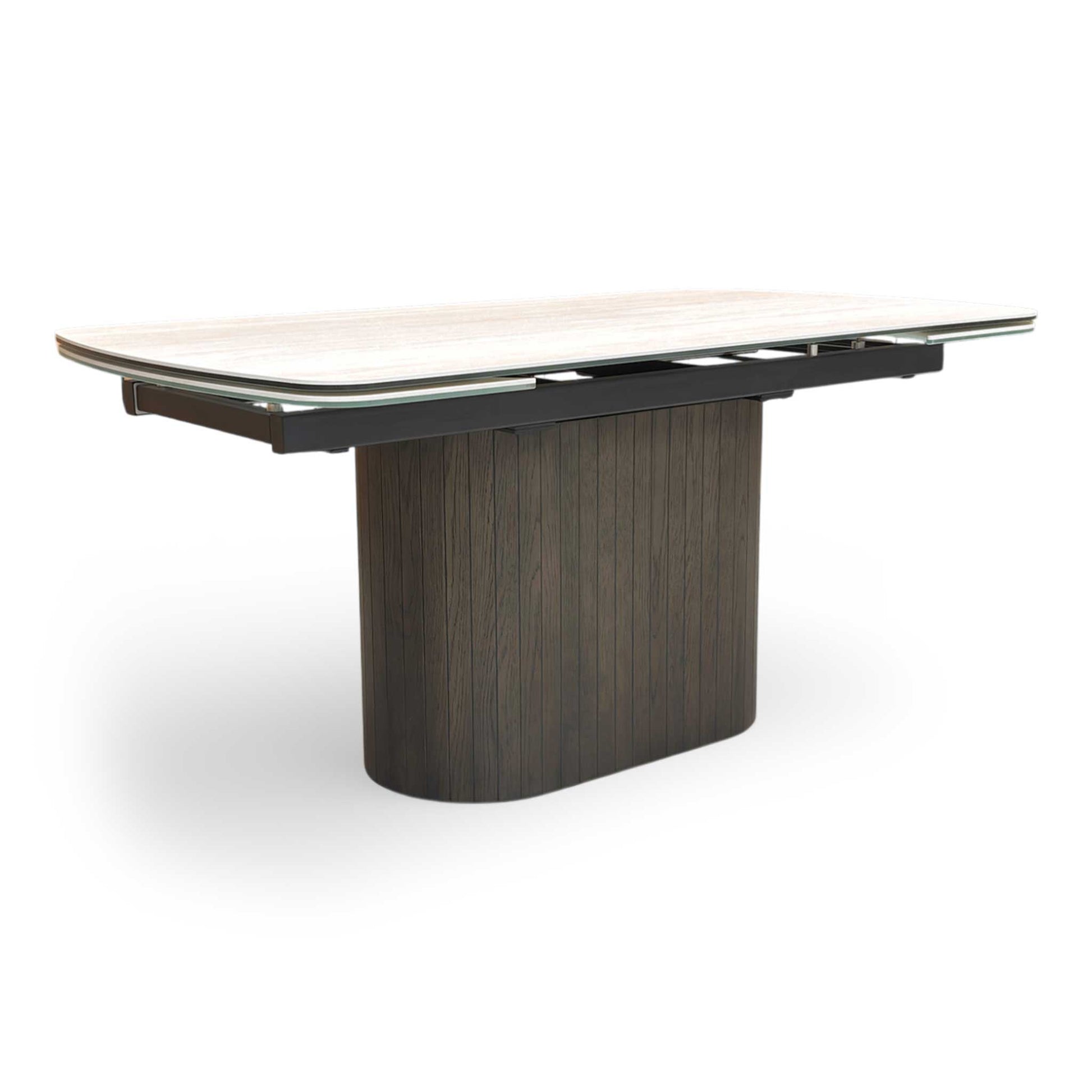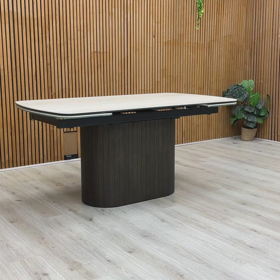 ‘Tiber’ Travertine Ceramic Top 160cm Draw Leaf Extending Dining Table
