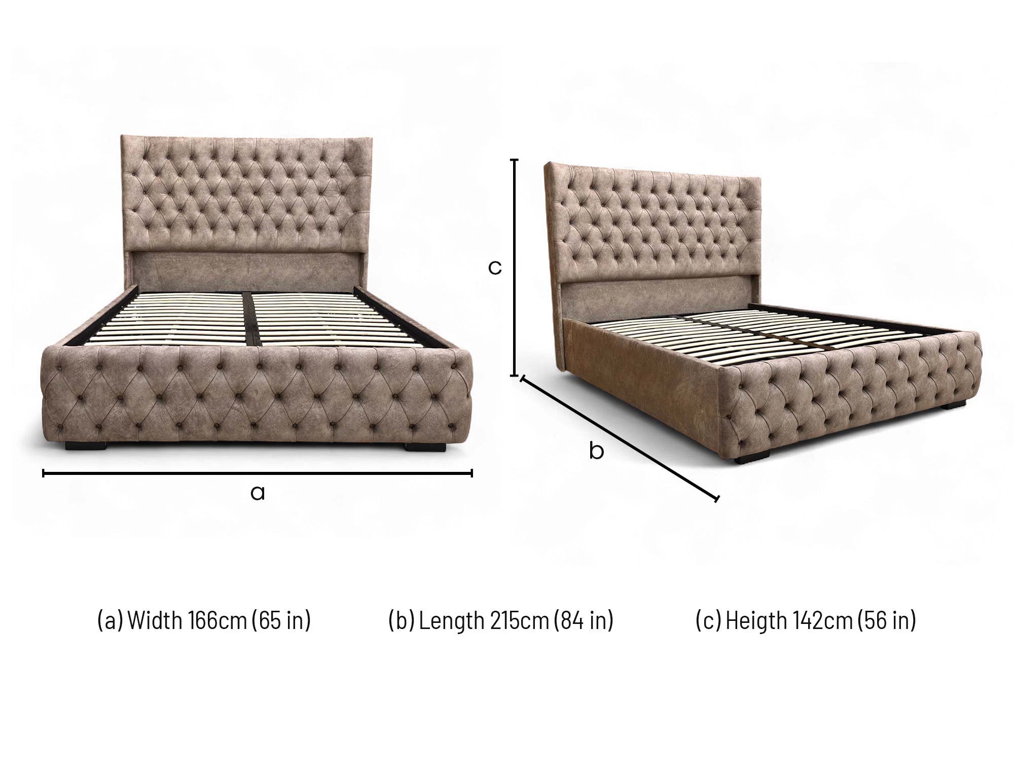‘Tobias’ Dapple Mink Dapple Velvet Floor Standing Headboard + Electric End Lift Ottoman Bed Frame - King