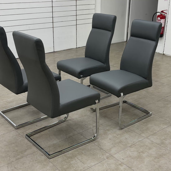‘Tokyo' Grey Faux Leather Cantilever Dining Chair - Set of 4