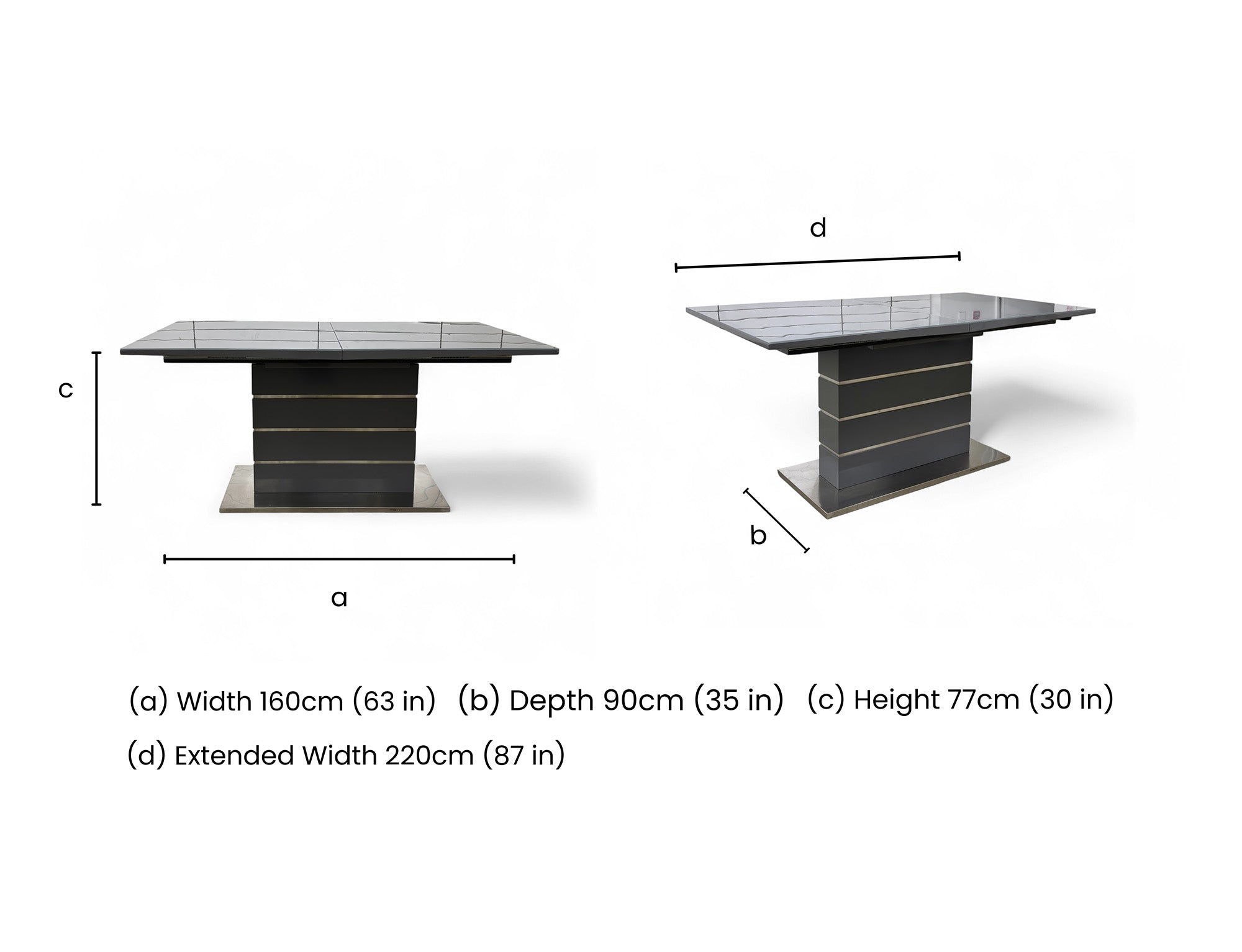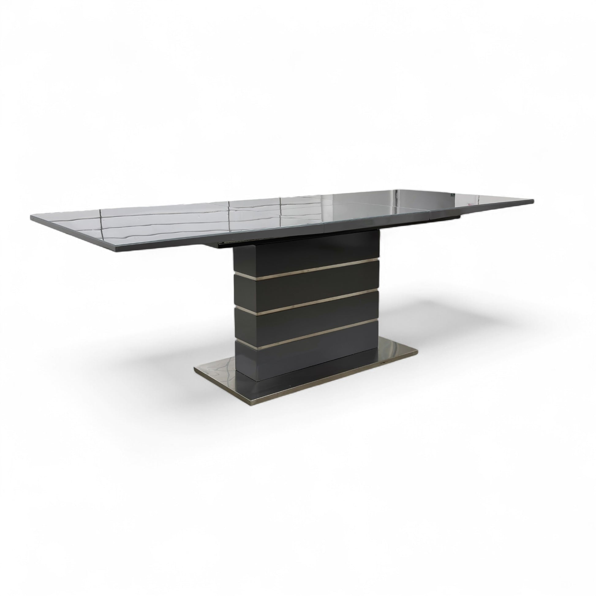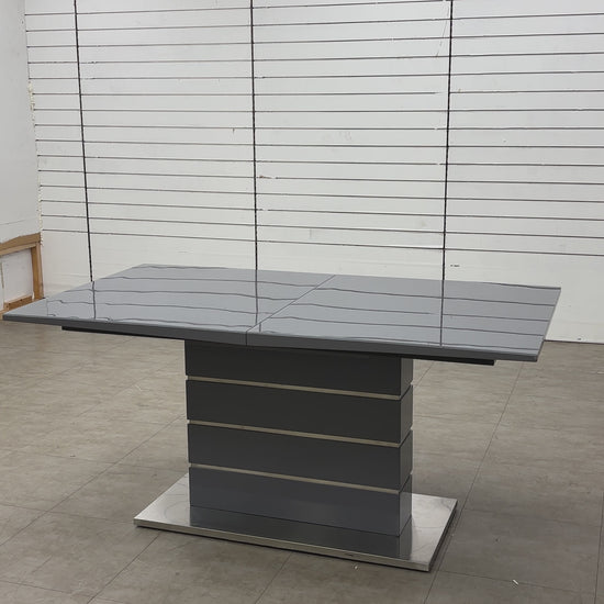 ‘Tokyo’ High-gloss Grey Tempered Glass 160cm Large Extending Dining Table