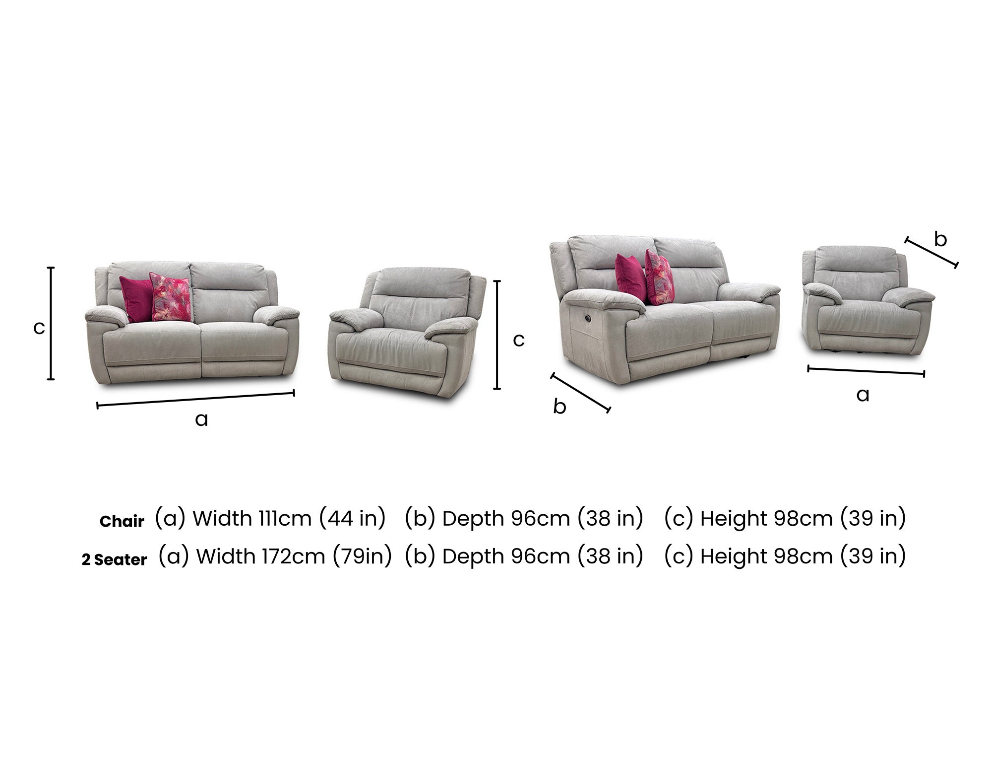 'Touch' Bfa-Mad-R02 Feather Heavy Duty Fabric 2 Seater Power Recliner Sofa with USB Ports + 'Touch' Power Recliner Armchair