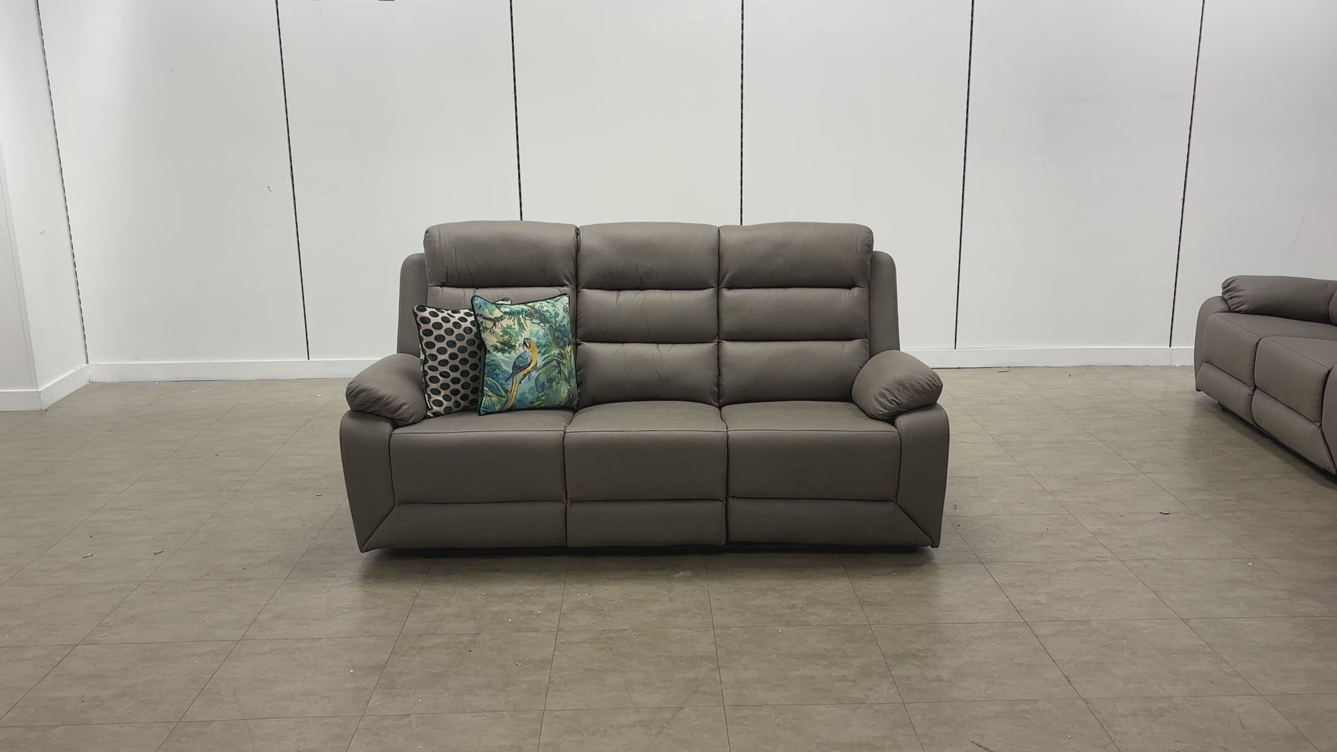 The ‘Trinity’ Manual Recliner 3 Seater Sofa is upholstered in soft grey Endurance fabric, offering durable, stain-resistant comfort. Featuring individual manual recline mechanisms, it allows personalized relaxation for each seat. Expertly constructed with supportive cushioning and a robust frame, this sofa blends contemporary design with practical functionality, making it an excellent choice for spacious living areas seeking both style and lasting comfort.