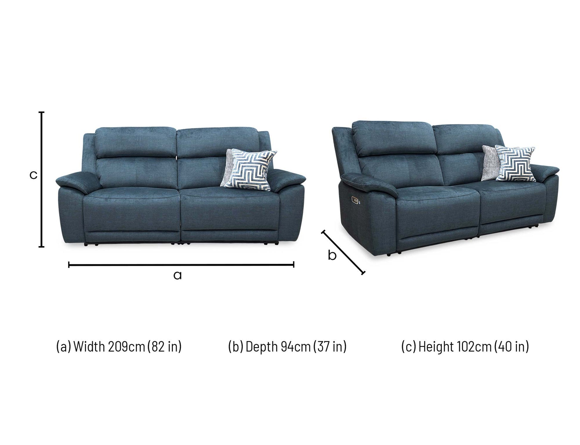 'Utah' Giula Dark Blue Velvet 3 Seater Power Recliner Sofa with Power Headrests Power Lumbar and Heated Seats