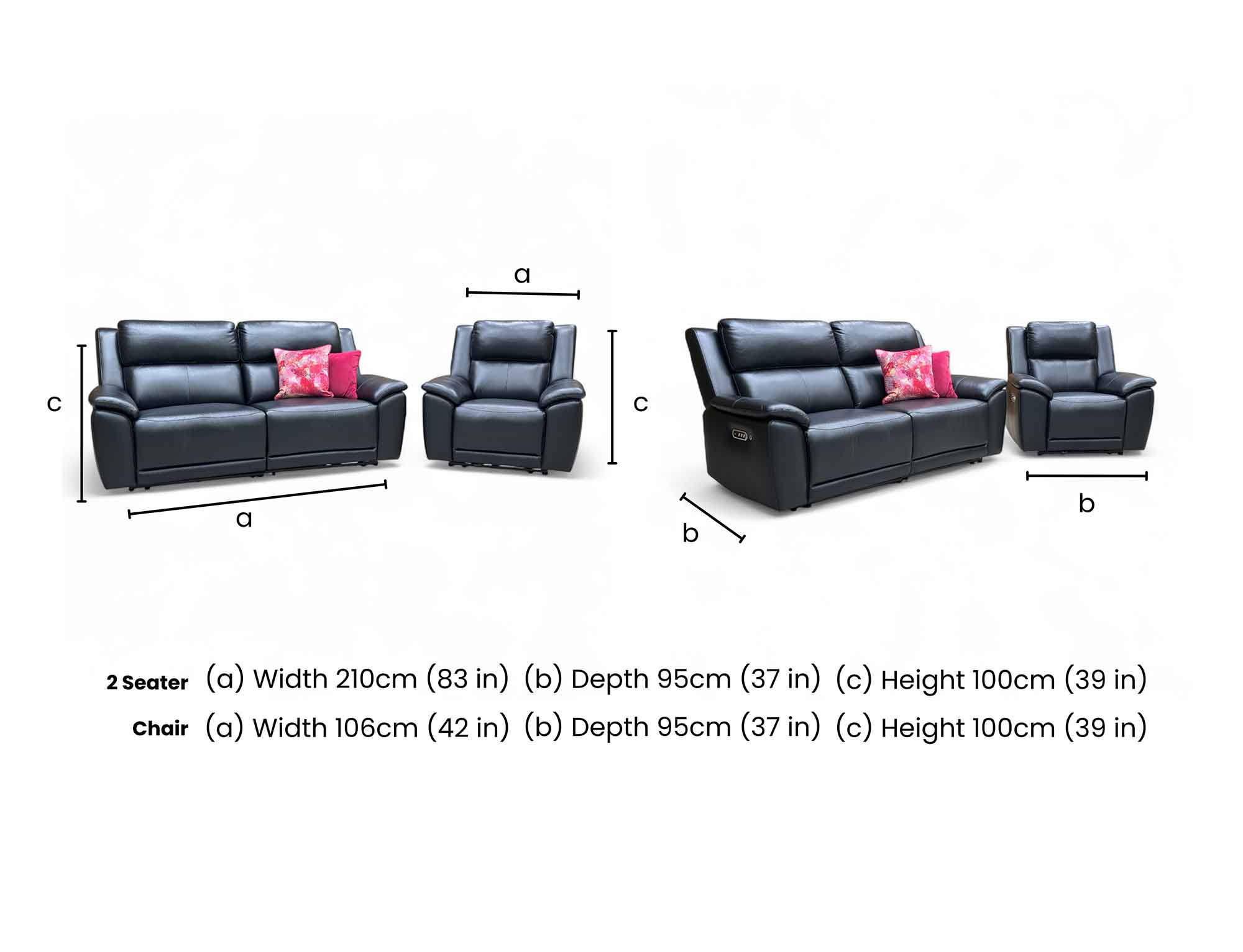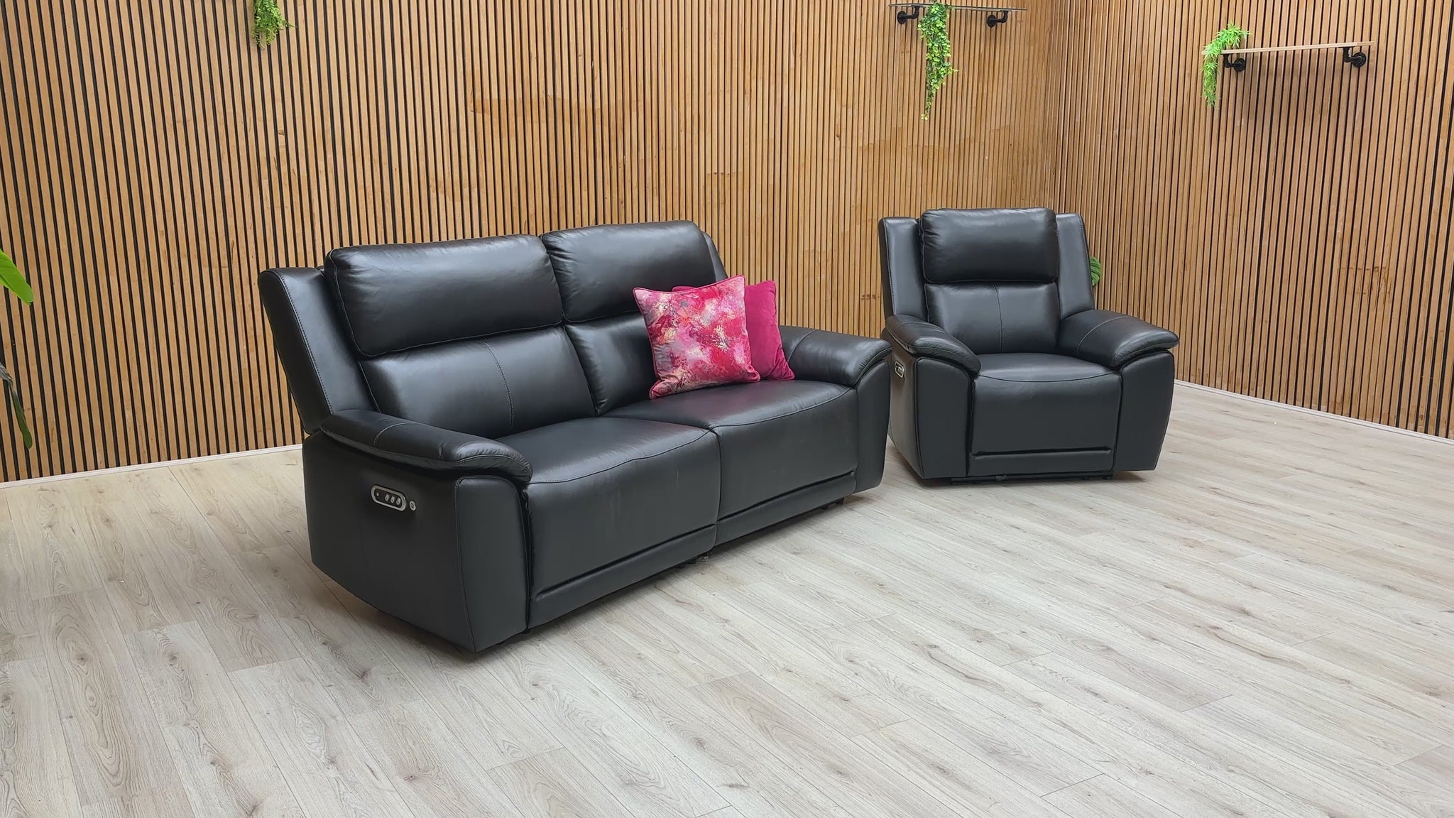 - The Furniture Village ‘Utah’ 3 Seater Sofa + Chair Power Recliner in Black Leather is a stylish and comfortable addition to any living room.