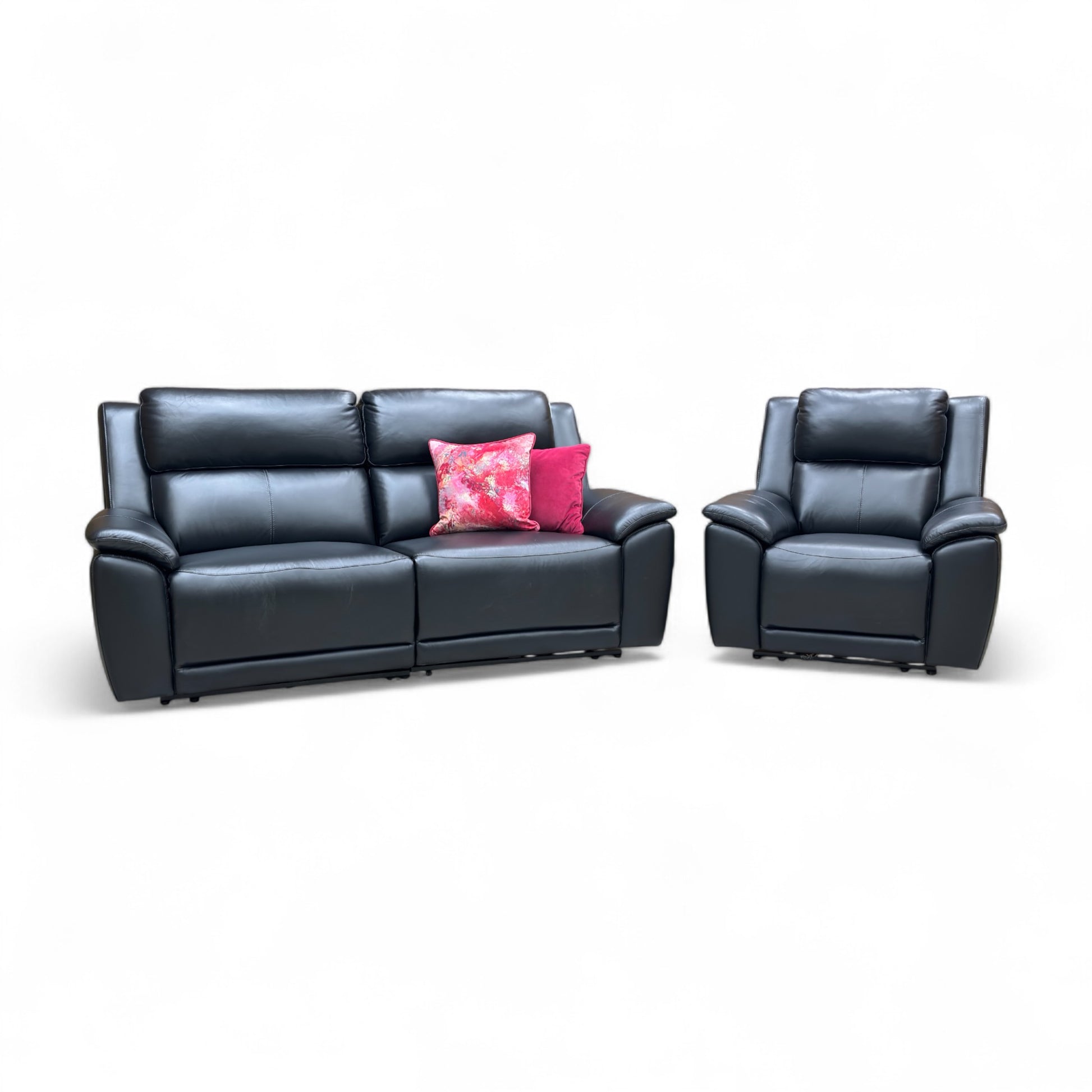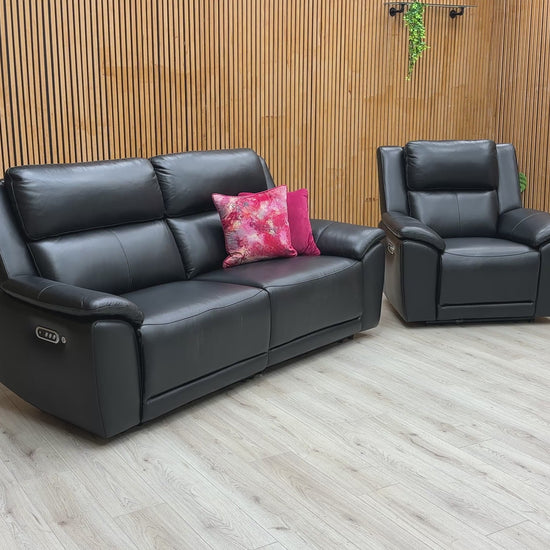‘Utah’ Natural Black Mica La4820 Leather 3 Seater Power Recliner Sofa with Power Headrests, Power Lumbar and Heated Seats + Power Recliner Armchair