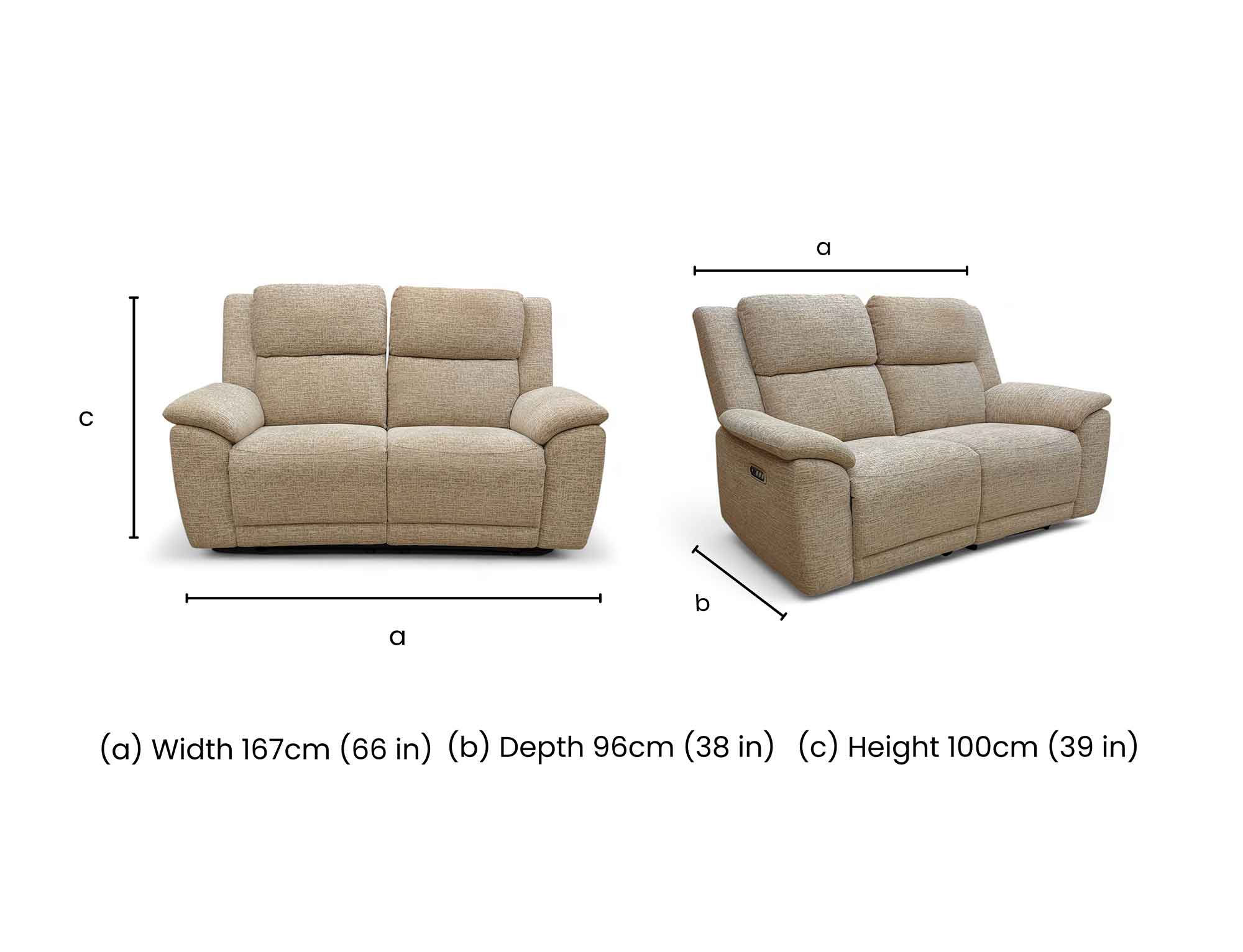 ‘Utah' Oatmeal We-0101 Fabric 2 Seater Power Recliner Sofa with Power Headrests and Power Lumbar