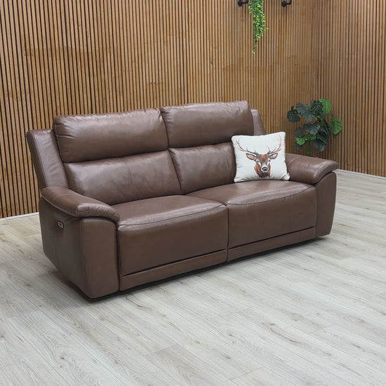 'Utah' Roast Lx-6414 Leather Power Recliner 3 Seater Sofa