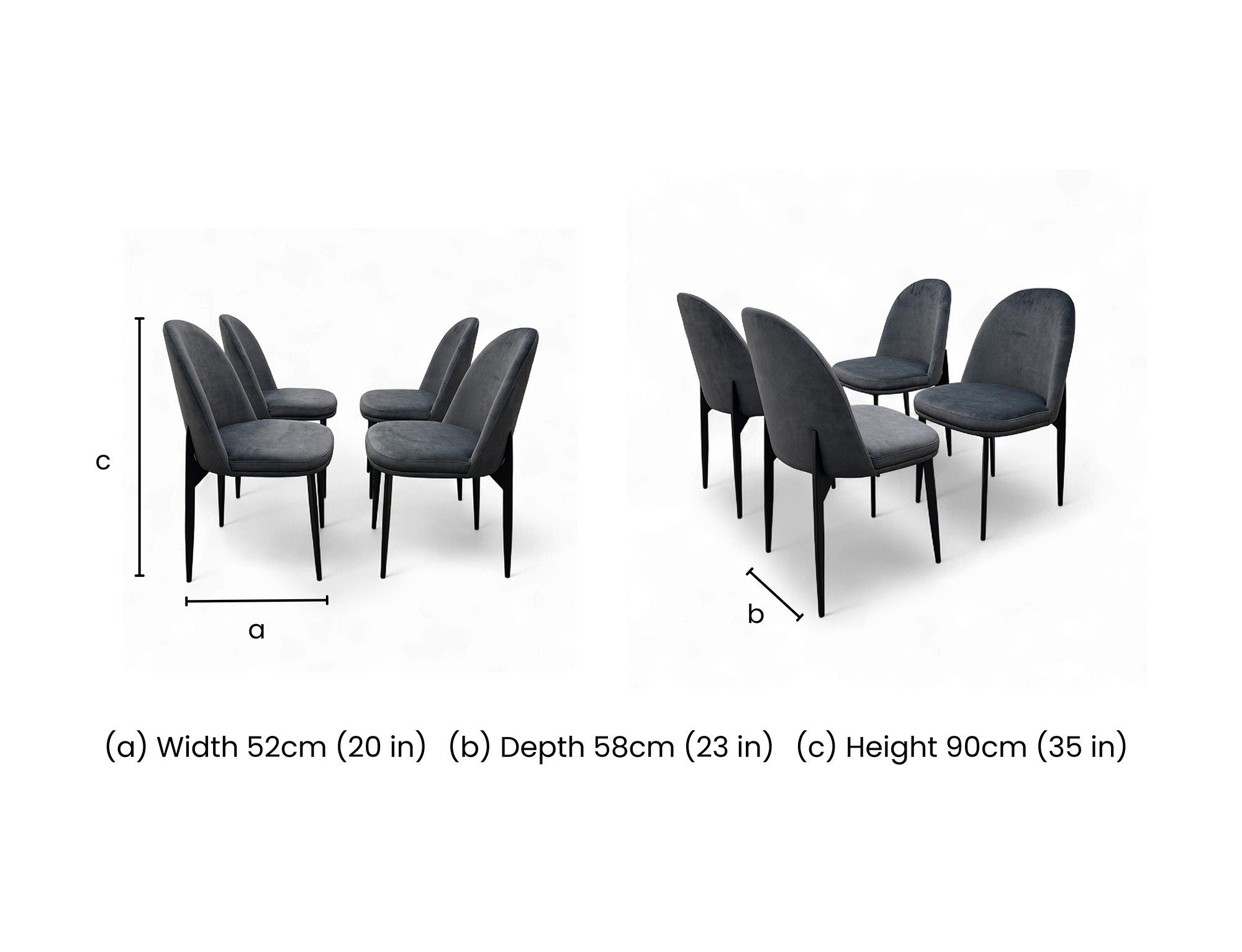 'Valent' Dark Grey Velvet Dining Chair - Set of 4