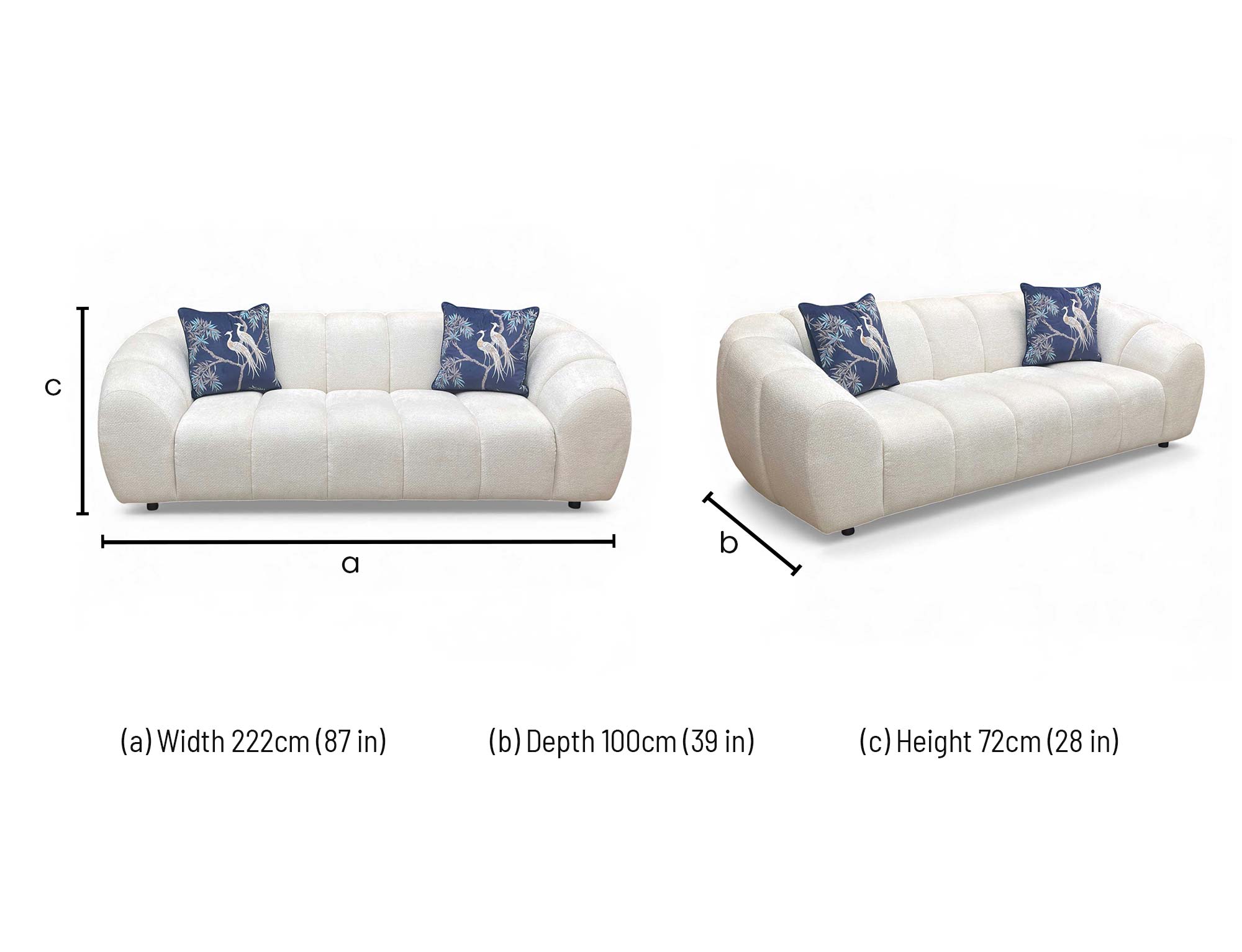 ‘Waldorf’ Soft Chenille Ivory White All Over 3 Seater Sofa