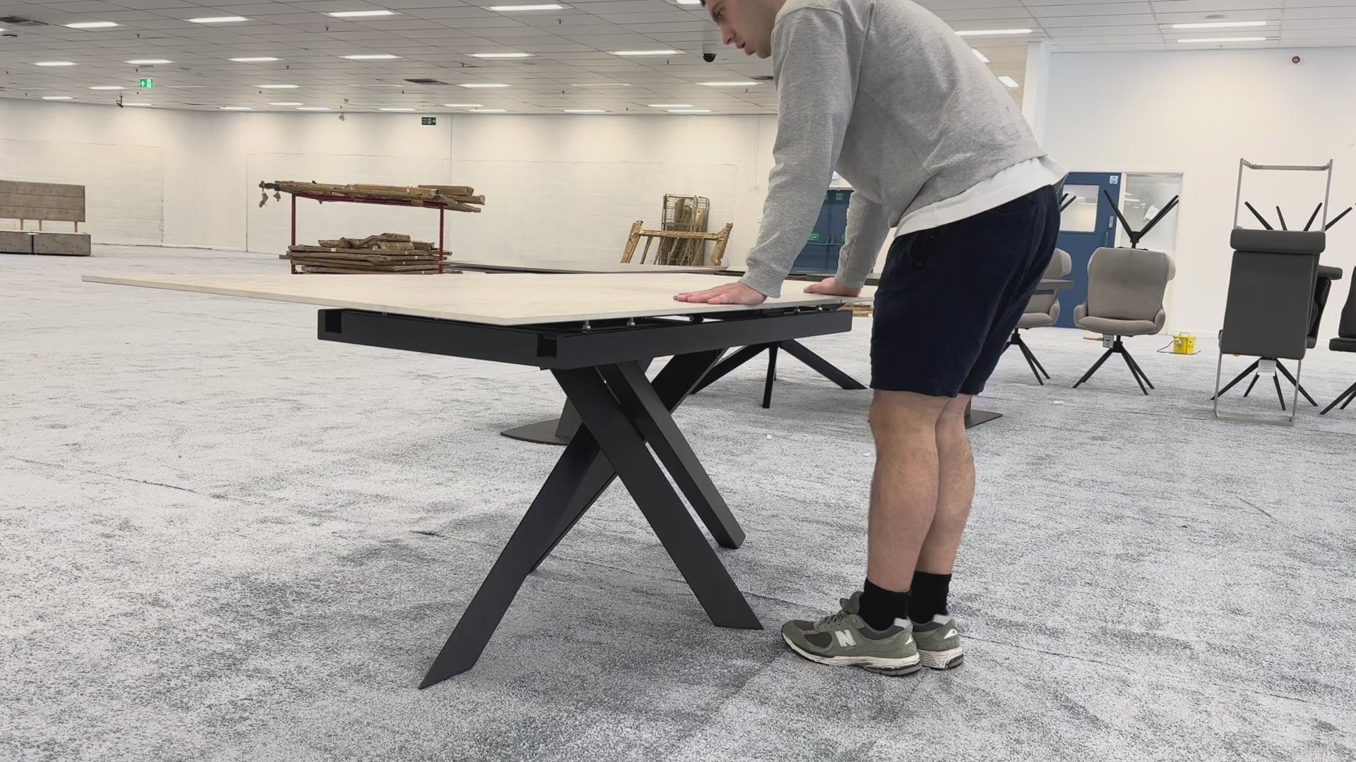 ‘Warrior’ Crystal White Sintered Stone Extending Dining Table