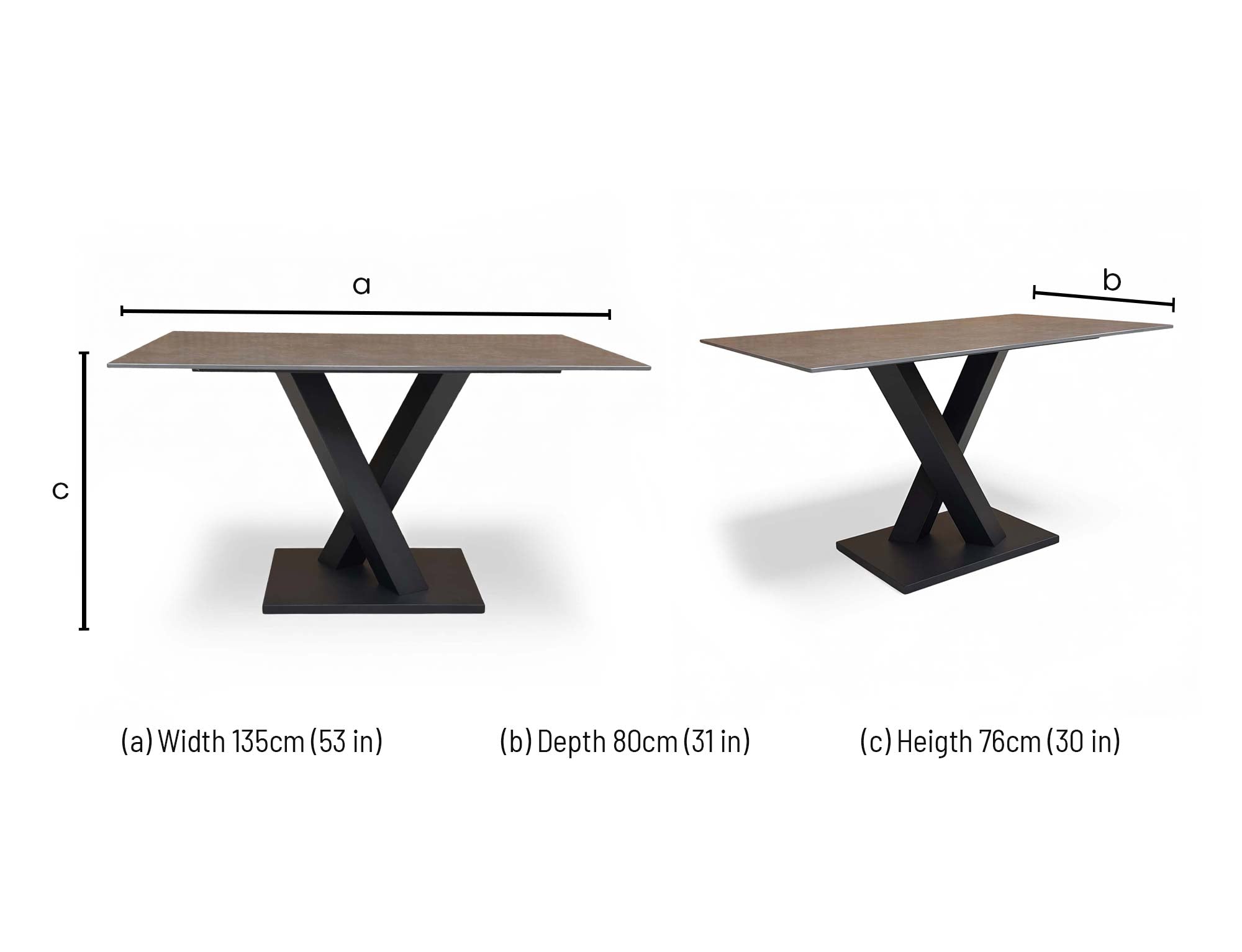 • Statement compact dining table has a durable, matt-finished sintered stone top.