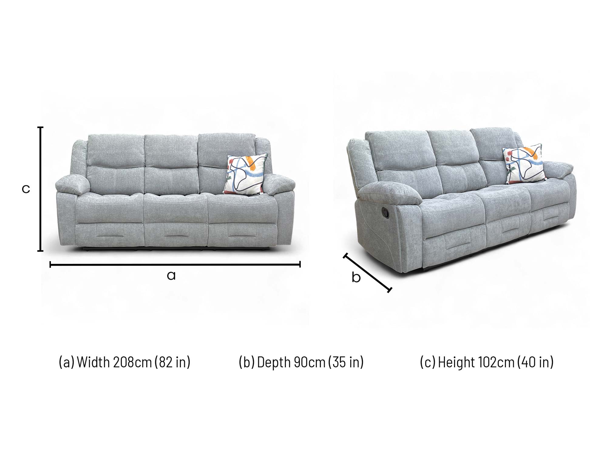 ‘Weston’ Light Grey Fabric 3 Seater Manual Recliner Sofa with Drop Down Cup Holders