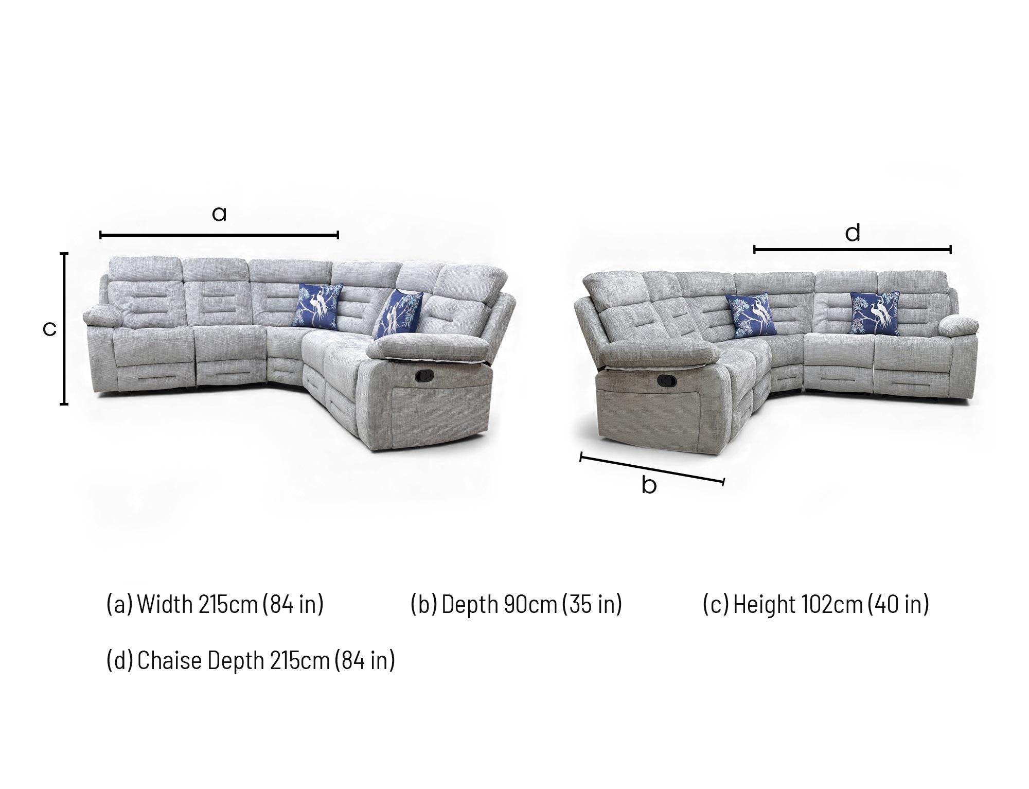 ‘Wilbur’ Grey Fabric Manual Recliner Modular 2 Corner 2 Sofa