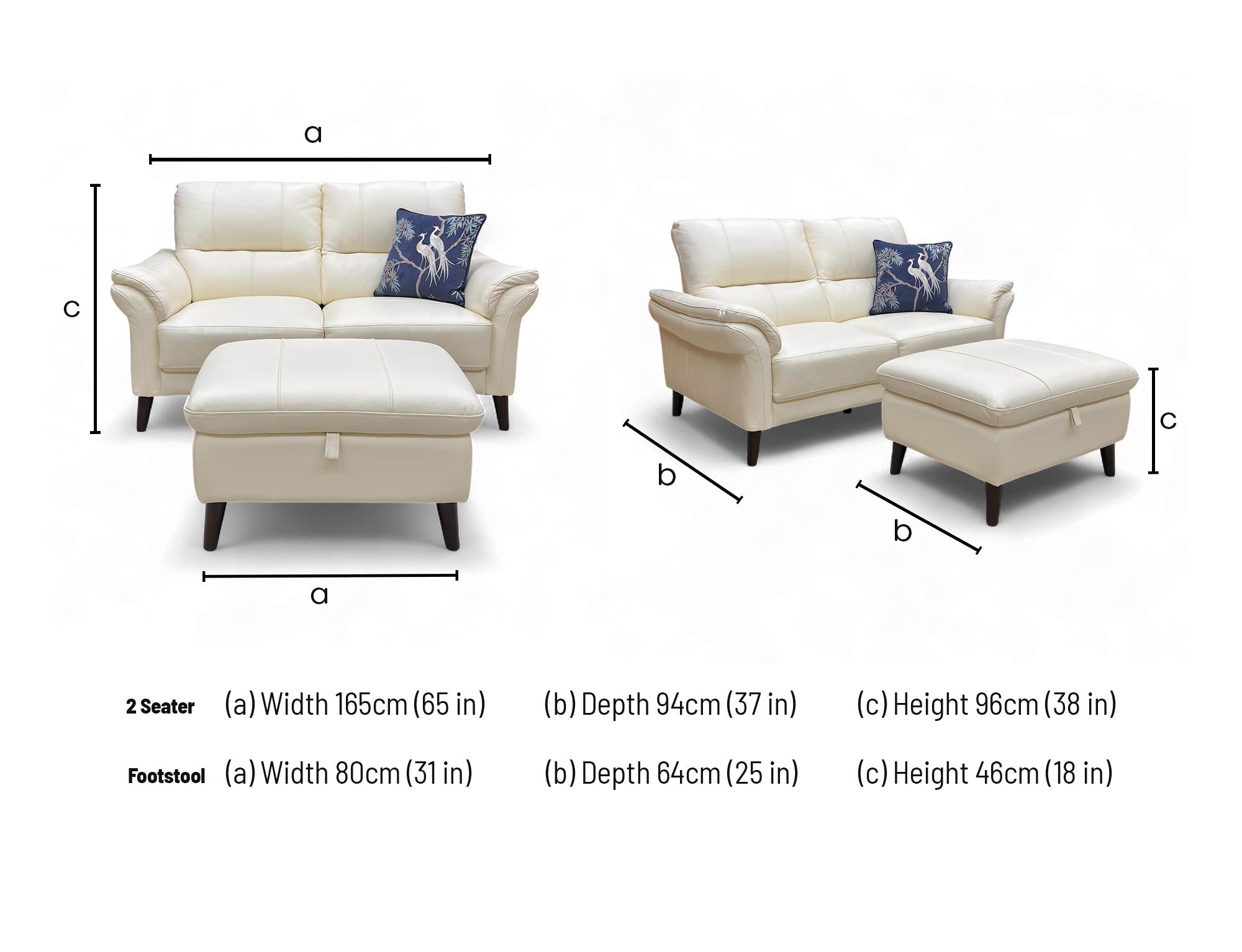 ‘Winner’ Oslo Cat-40:13 Cotton White Leather 2 Seater Sofa + Storage Footstool