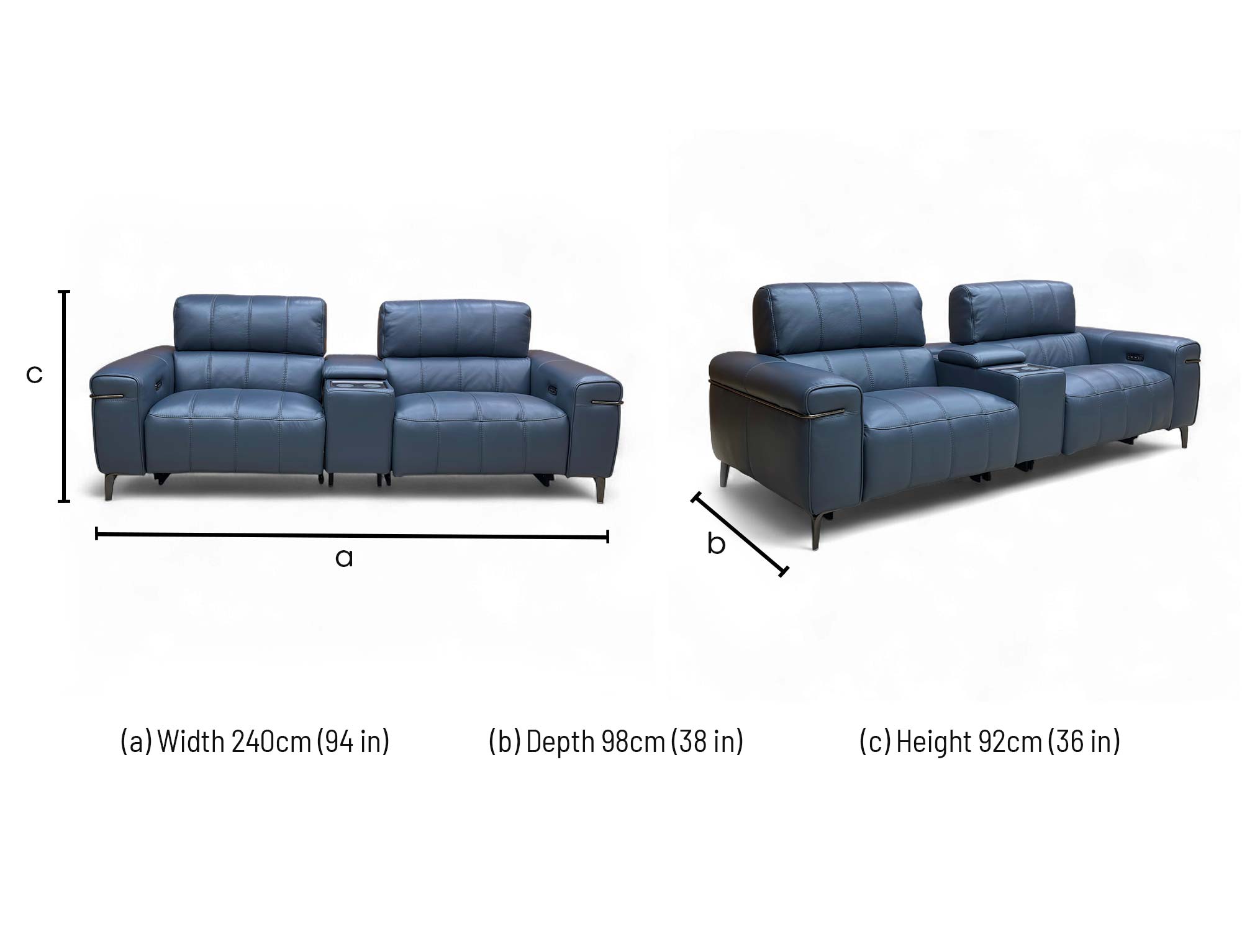 World of Leather ‘Homestage’ Nc-313e Ocean Blue Leather 3 Seater Power Recliner Media Sofa with Console and Power Headrests