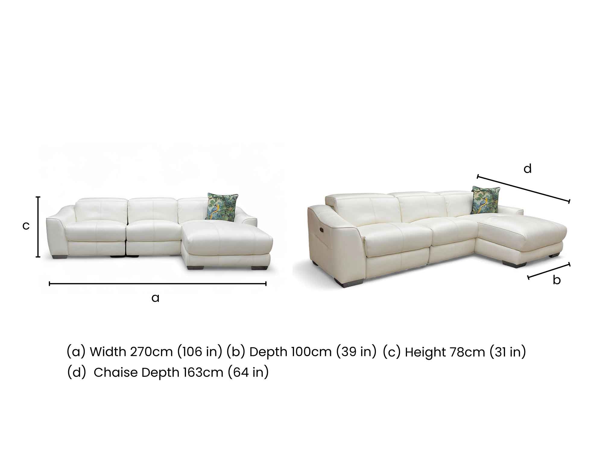 World of Leather ‘Xavier’ Hw-744d Star White Leather Double Power Recliner Right Hand Facing Open End Chaise Sofa with Power Headrest