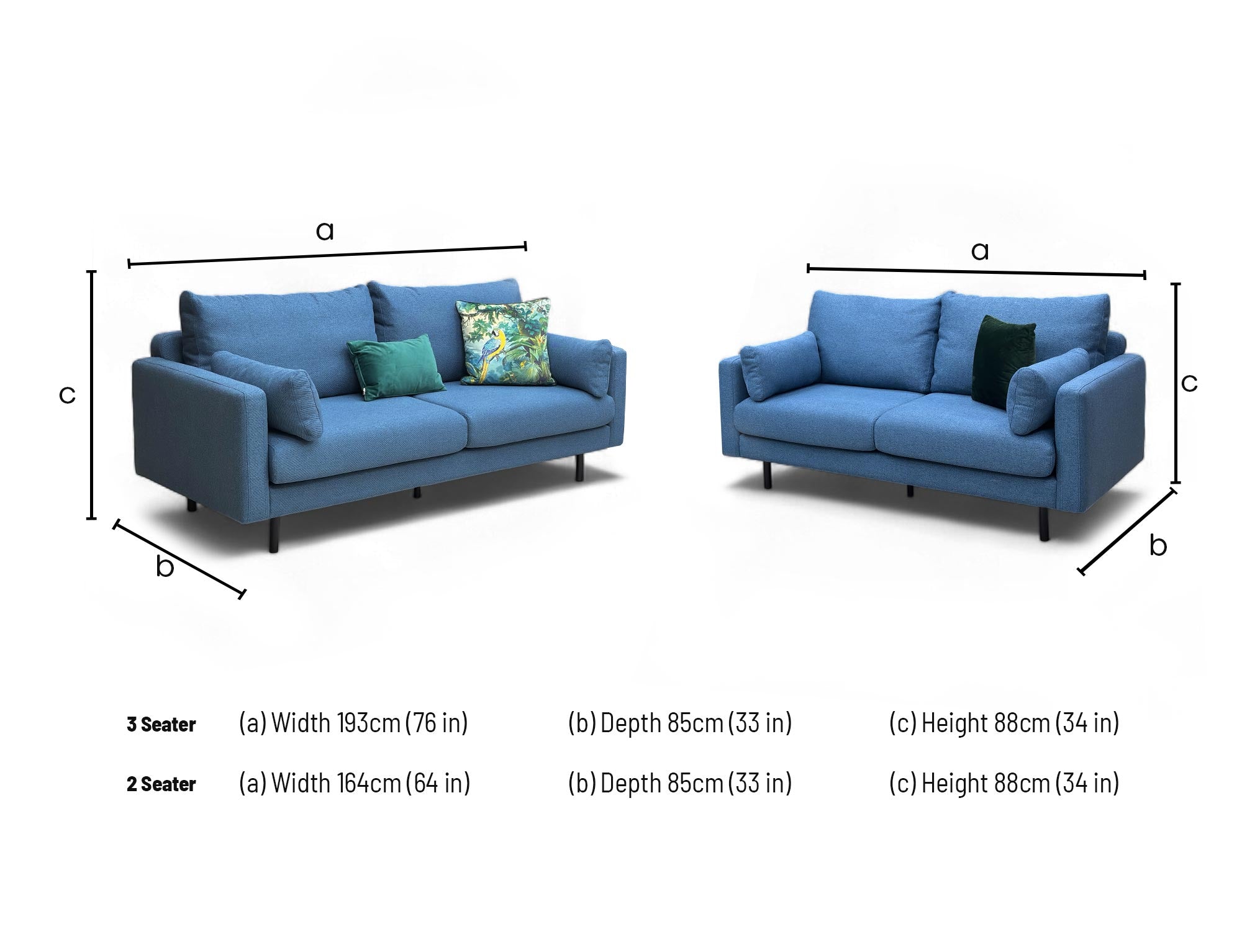 ‘Wren’ Navy Blue Fabric 3 + 2 Seater Sofa Set