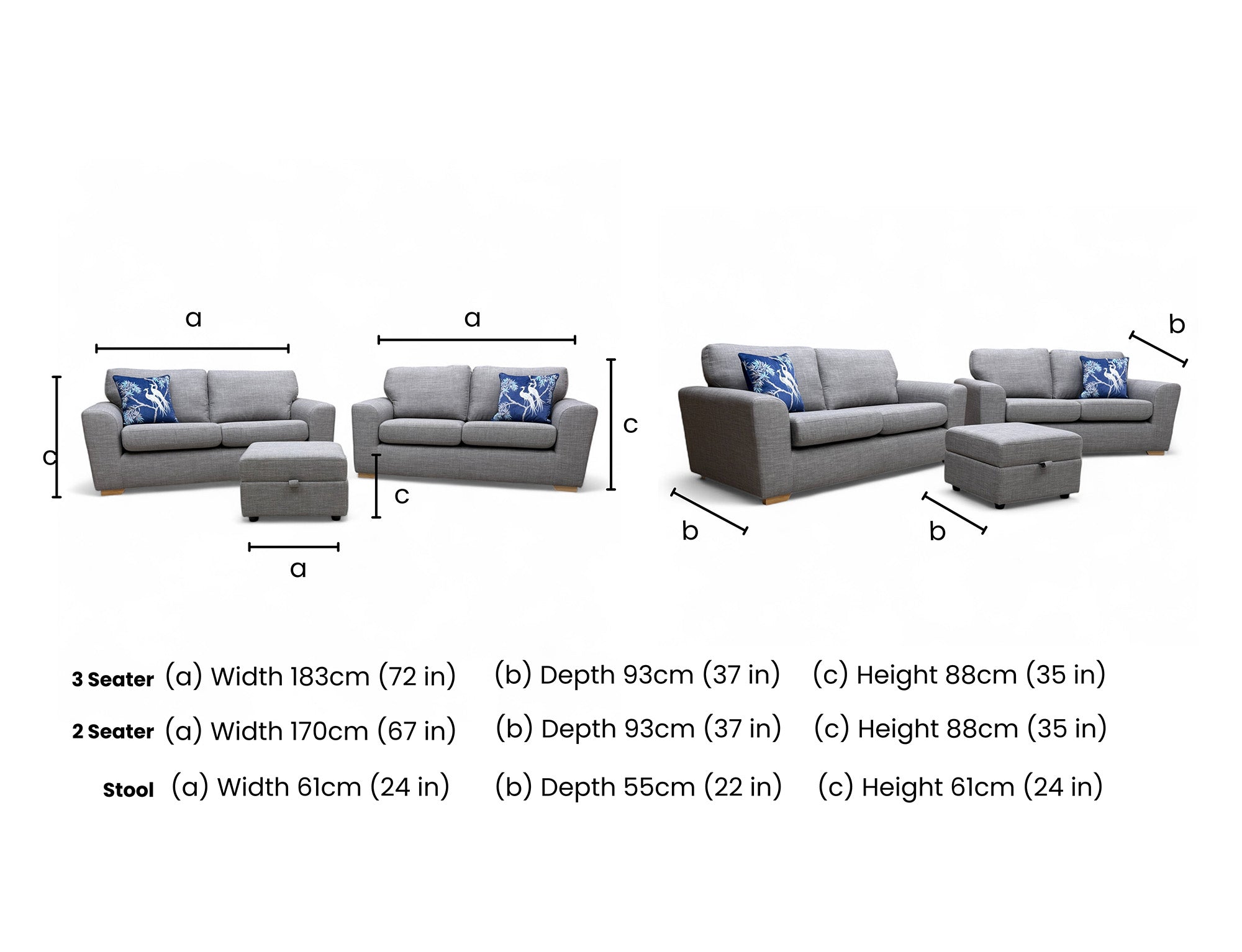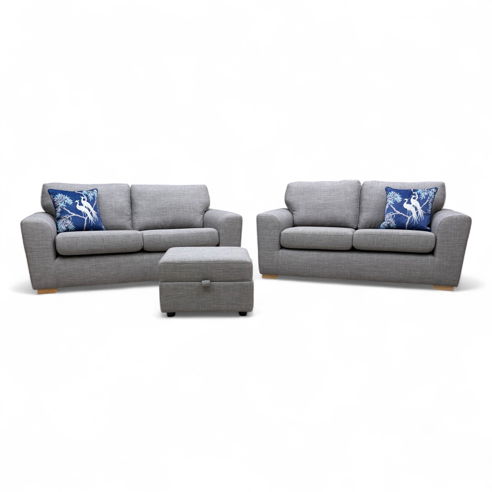 Experience comfort and versatility with the 'Zeb' Slate Revive Fabric Sofa Set, featuring a 3-seater and a 2-seater sofa crafted from durable, easy-care Revive fabric in an elegant slate tone. This set combines modern design with practical function, complemented by a storage footstool that offers hidden space for keeping essentials organized. Ideal for enhancing living spaces with both style and convenience, the collection provides ample seating and smart storage solutions to fit your needs.